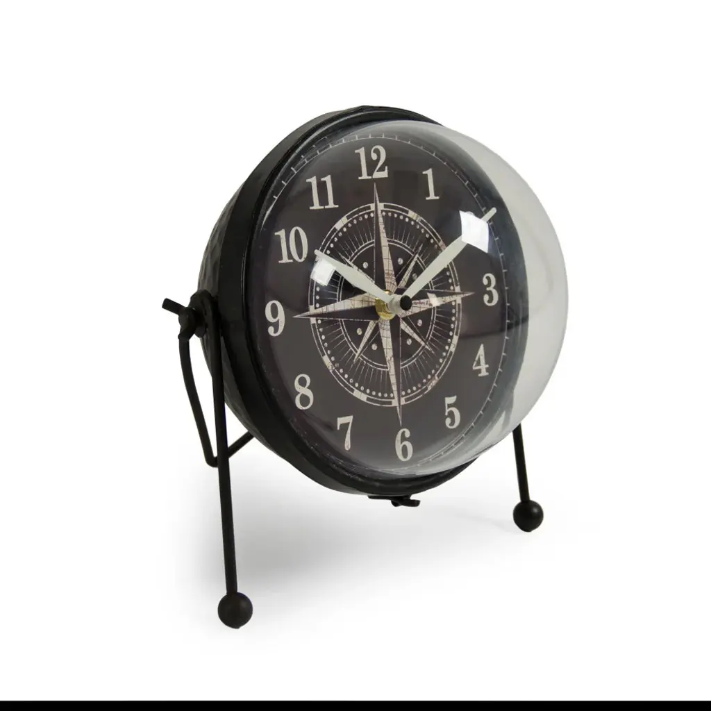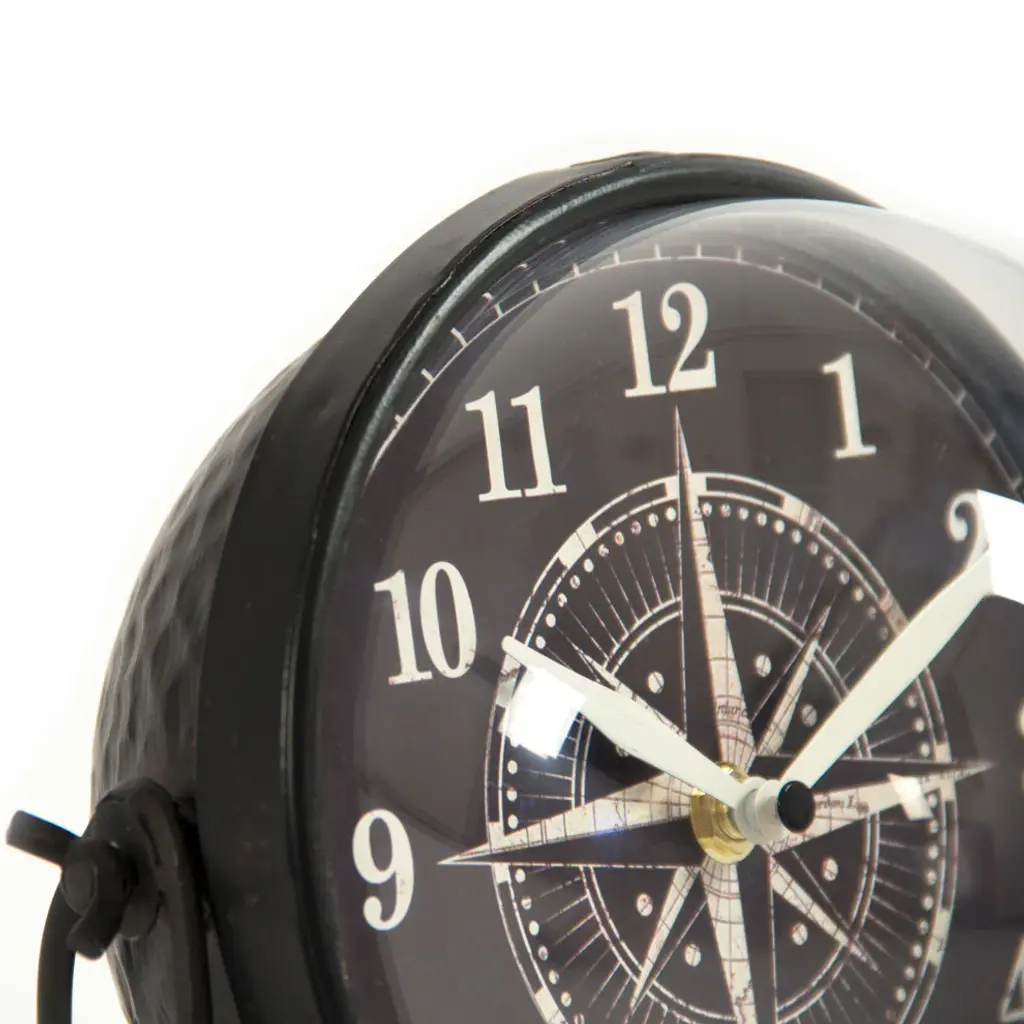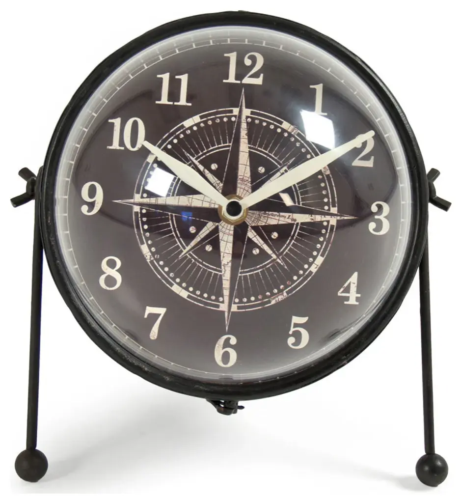 Sphere clock with nautical compass design.