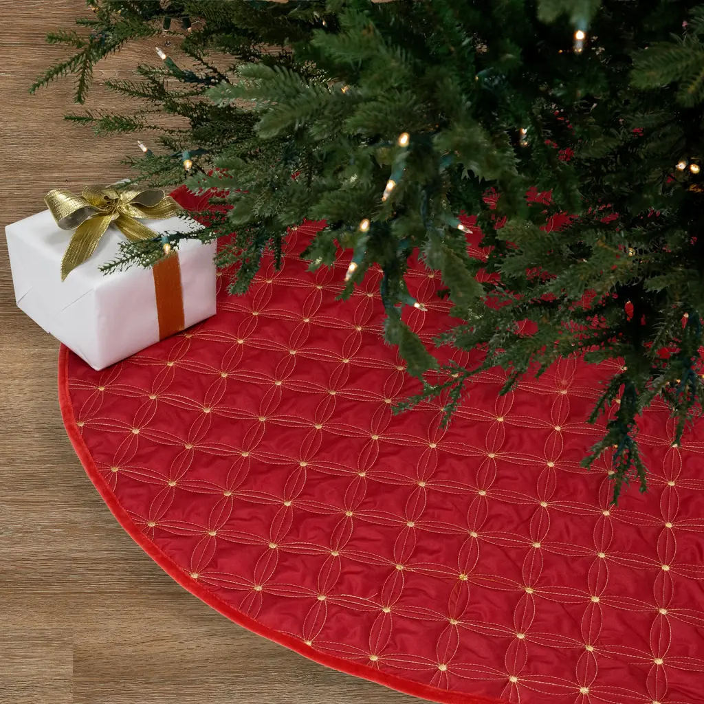 Round Quilted Tree Skirt - 60" - Red - 60"