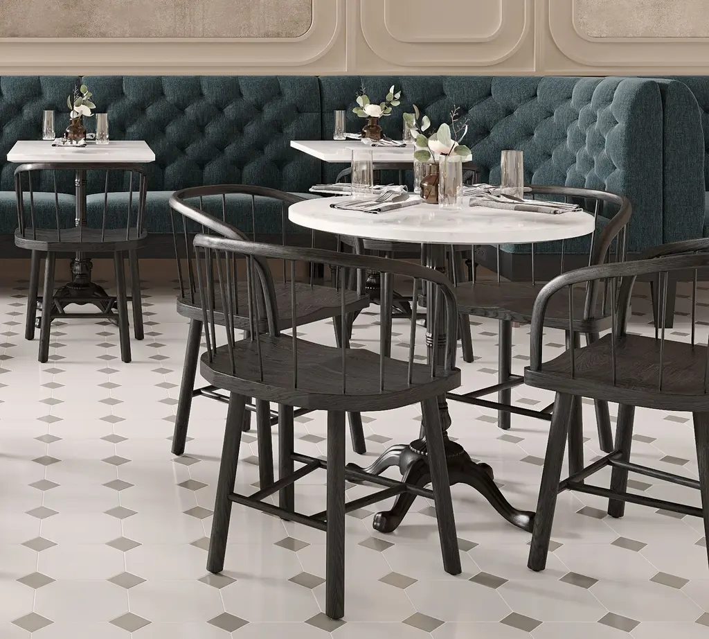 Designed in-house to meet a range of hospitality needs, this bistro table takes its cue from Parisian café culture. Part of a customizable and contract-grade collection, it lets you create an intimate dining spot anywhere from breakfast nooks and backyards to restaurant terraces. Choose your finish, your outdoor-safe tulip or vintage brasserie base, and a scratch-resistant top in wood or white marble.