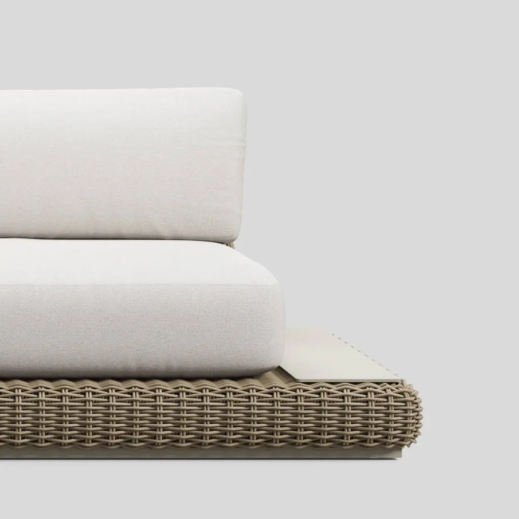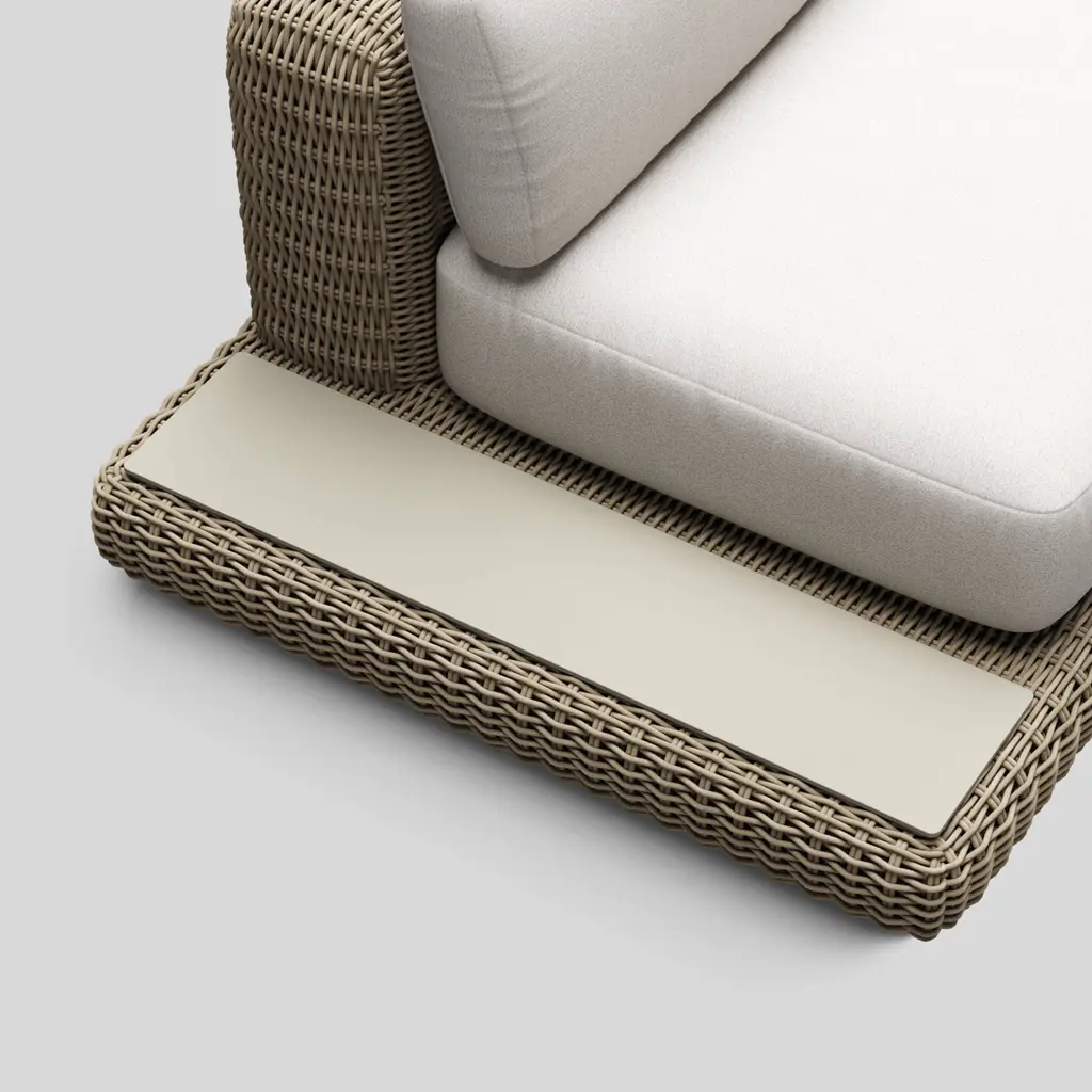 Drop it low. The Roundabout Side Table Insert is a neatly designed aluminum tabletop option for the all-weather wicker Roundabout collection. Switch out your Roundabout sofa, chair, or sectional arm for a side table that sits pretty and acts as a durable surface for all your outdoor odds and ends.