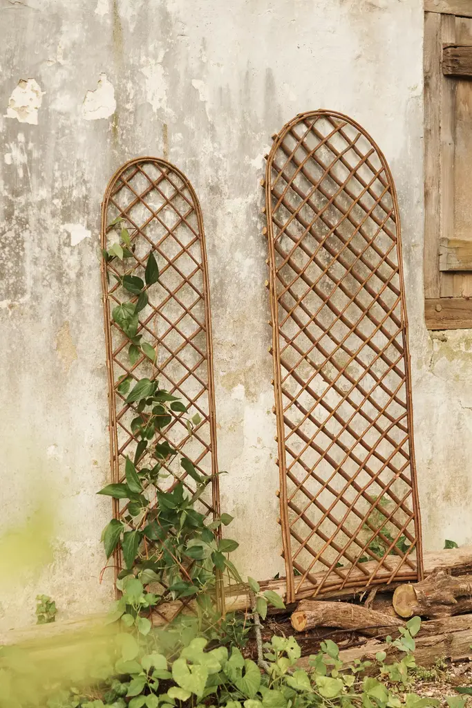 Woven from natural willow, these rustic garden structures are decorative and practical supports for climbing plants. With a rounded arch-inspired top to create visual interest.