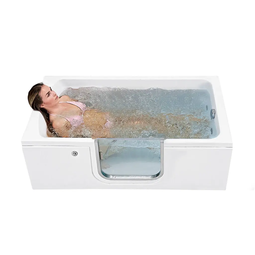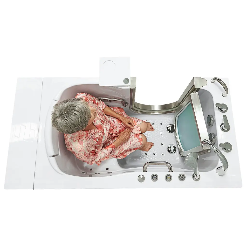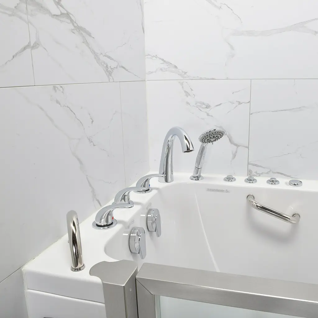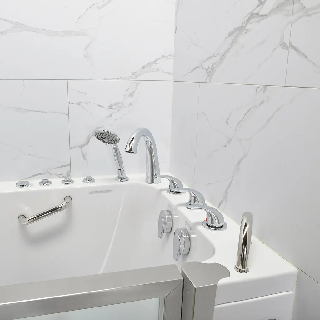 Royal 32" X 52" Acrylic Air And Hydro Massage Walk-In Tub, Inswing Door, Fast Fill Faucet, 2" Dual Drain, Carrara Wall Surround - Left Drain - Heated Seat