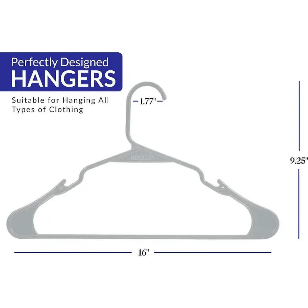 STURDY HANGER ORGANIZER SET: Royale Hangers Are Designed For Everyday Use. These High-value Organization Equipment Is Made Of A Heavy Duty Plastic Material That Is Eco-friendly And Durable. Organize Or Reorganize Tops, Shirts, Dresses, Pants, Suits And Shawls. Plastic Hanger Are The Ultimate Organizer For Your Closets, Wardrobes & Armoires. Our Closet Hangers Maximize Space Due To The Slim, Space Saving Design. GREAT VALE PACKS: Royale plastic clothes hanger are available in black, white, grey and blue color. These Standard Hangers comes in a great value pack of 20, 40 and 60. Perfect for daily use. Buy in bulk & always be prepared for that spontaneous guest or successful shopping spree! Fabric Friendly: Royale Organizing Plastic Hangers Features Clean And Smooth Finish. No Color Transfer From The Hangers Means That They Do Not Stain Your Clothes. Smooth Body Ensures That No Sharp Corners Will Rip Your Clothing Or Leaving A Unwanted Creases Or Marks On Your Clothes. PERFECT STANDARD DIMENSIONS: Royale Premium Plastic Hanger comes in a slim and sleek design with each hanger having a standard size of 16 x 9.25 x 1/2 Inch. Their perfect standard dimensions ensure that they are well-suited to any closet BUILT-IN SHOULDER GROOVES: Royale notched hangers are suitable for kids and adult clothing, but can also be used for other accessories! Designed with notched shoulders, these nonslip hangers are great for hanging ties, belts, shawls, thin strap shirts, tanks and women undergarments such as bras, nightgowns, and camisoles. These flexible items are ideal for lightweight clothes, gripping delicate items such as shirts, blouses, t-shirts, dresses, as well as hanging heavy garments such as jackets, suits, and coats.