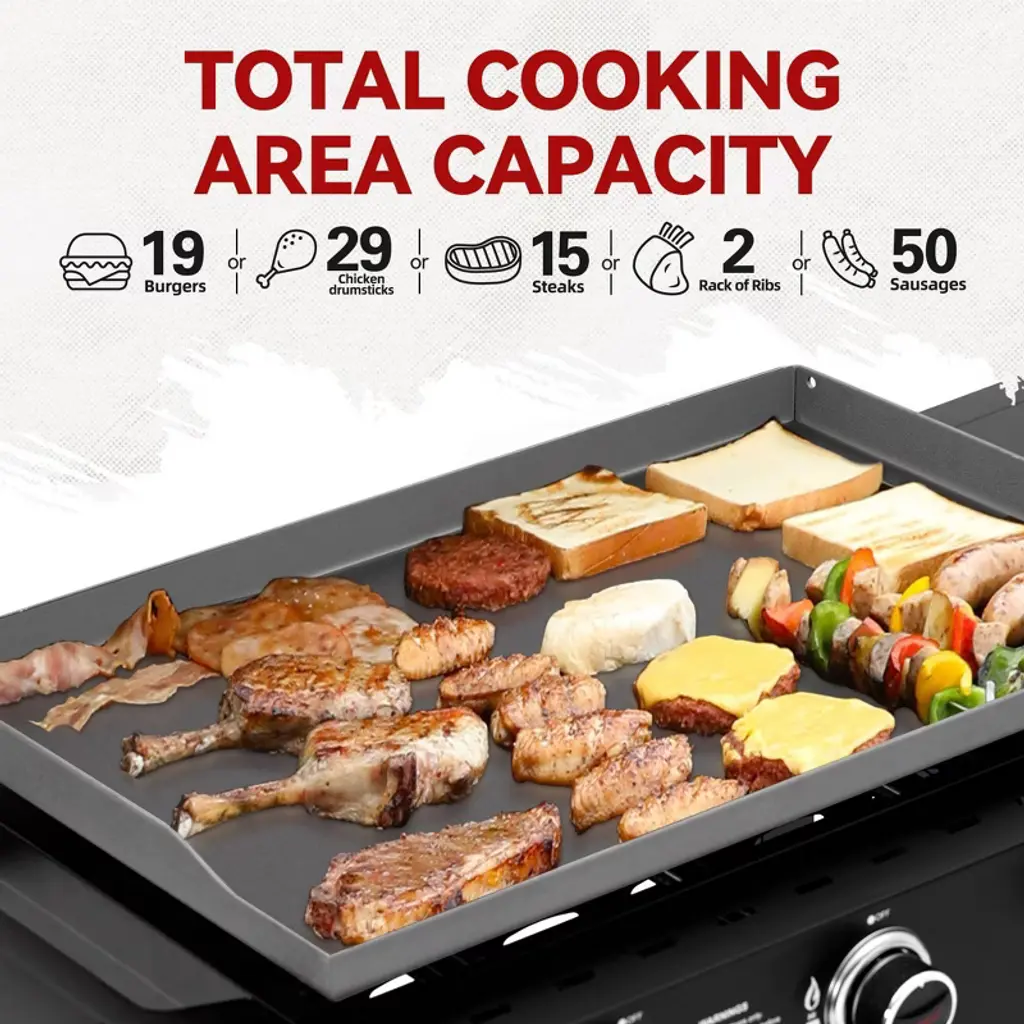Whether it’s whipping up a simple meal or making a hearty feast for family or friends, Royal Gourmet GB3000HTG 28-Inch 3-Burner Propane Gas Griddle is ready to make your culinary experience a memorable one. With features like a stylish appearance, fast and even heat, and hassle-free cleanup, this griddle is a combination of good looks, quality and practicality. For added convenience, 2 side shelves and a middle shelf with groove design orderly organize cooking utensils, keeping them within arm’s reach. Embrace the freedom to make your favorite recipes anytime anywhere! Let Royal Gourmet GB3000HTG make your day!