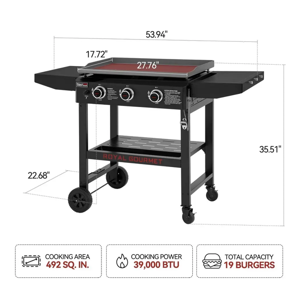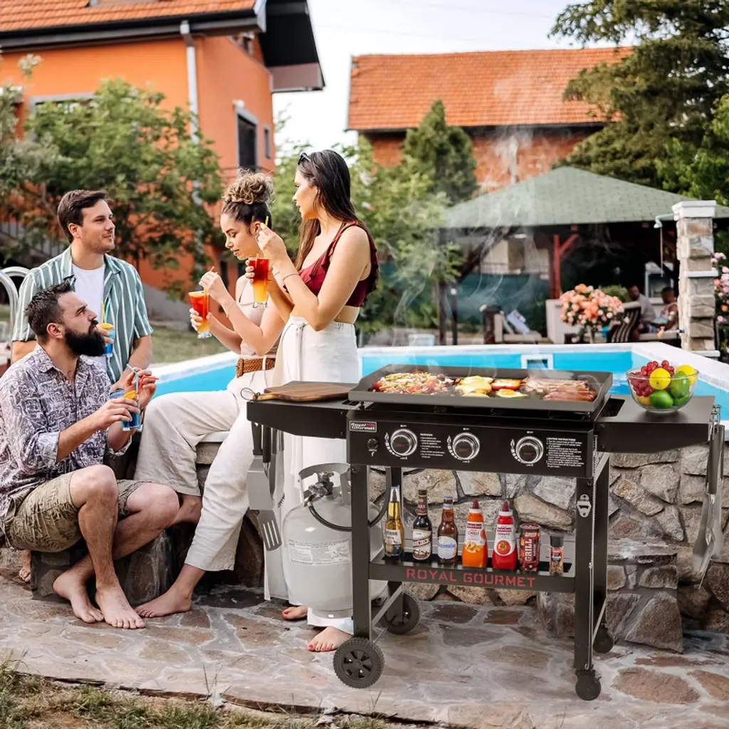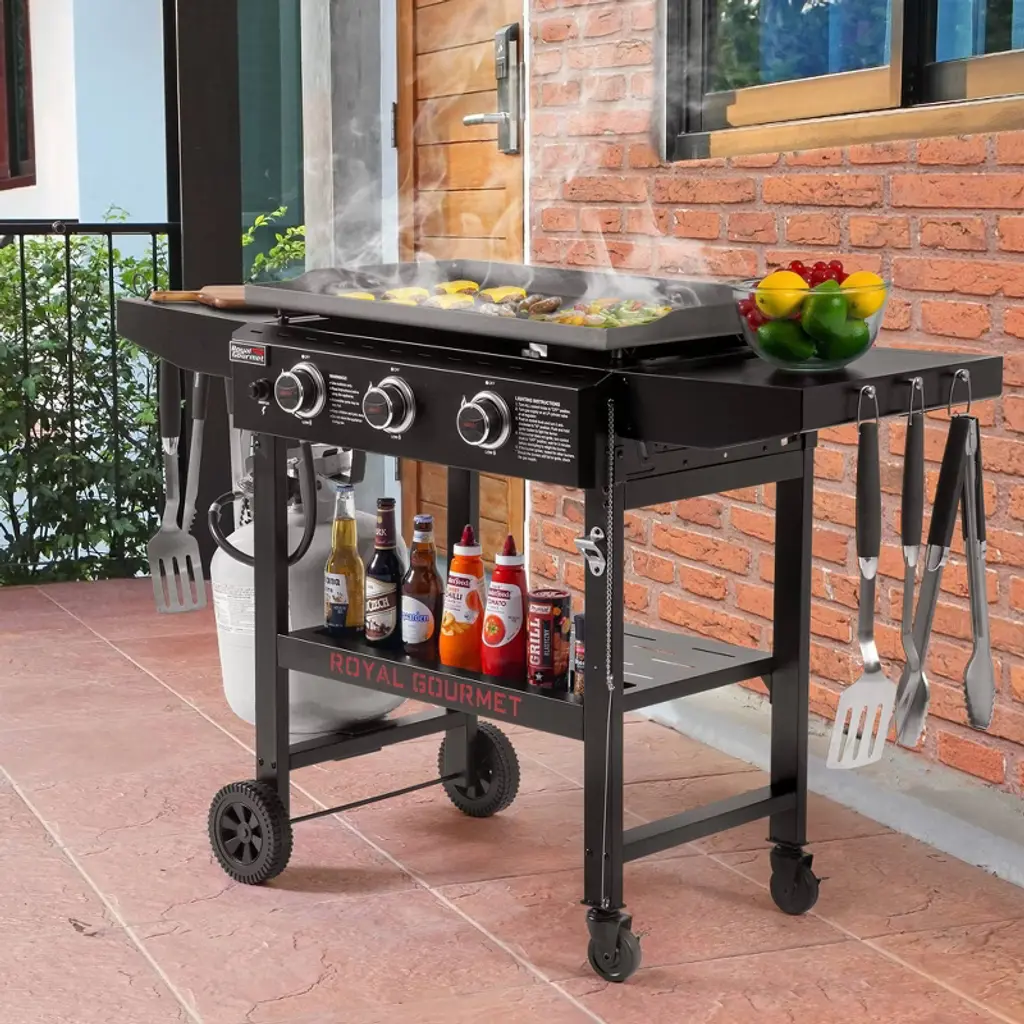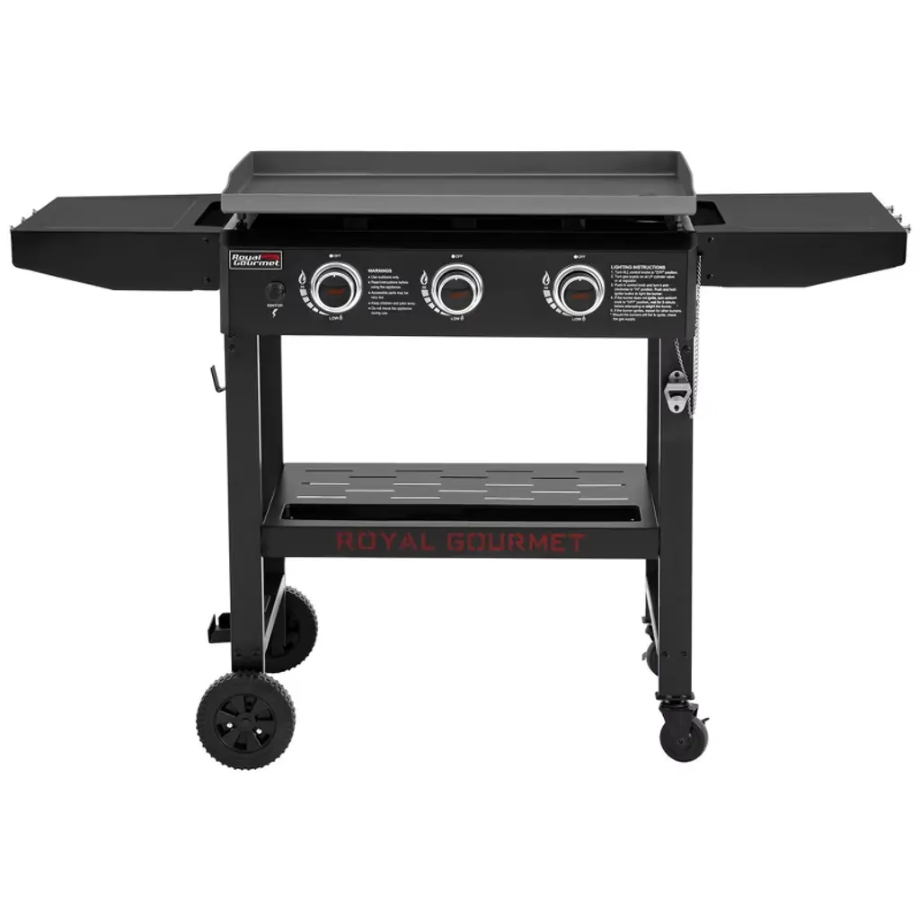 Royalgourmet 3-burner Propane Gas Griddle With Collapsible Side Shelves Gb3000htg Black