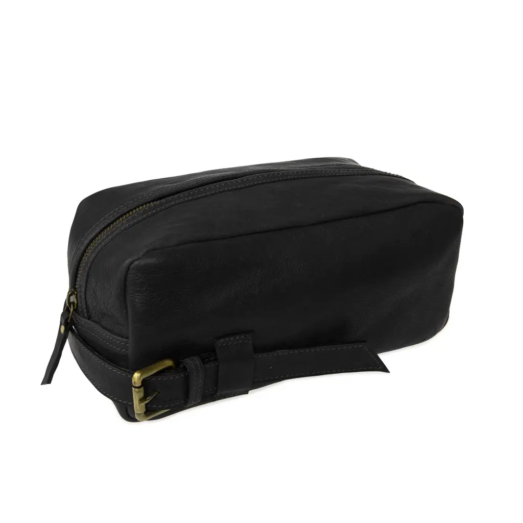 Toiletry bag made of leather. Double zip closure. Imported. undefined