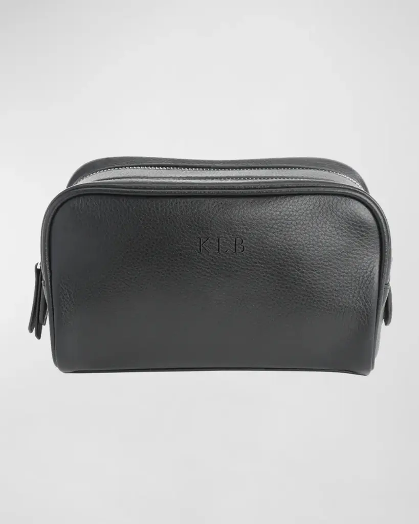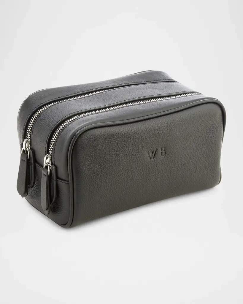 Royce New York Monogrammed Double Zip Leather Toiletry Bag | Horchow
