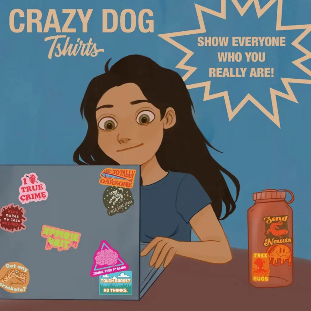 Roll for stickers! At Crazy Dog T Shirts, sarcasm is our first language so we made all of our funny tees, cozy hoodies, fun socks printed with the finest jokes, sarcastic quotes, and movie references. Our witty, sarcastic humor t-shirts are the perfect combination of high-quality and awesome! Express your love for stickers in the funniest way possible with this large novelty sticker pack, featuring hilarious designs that are perfect for customizing your favorite items. Whether you’re decking out your laptop, water bottle, journal, or car, these oversized vinyl decals stick securely and add a playful touch to any smooth surface. Made from high-quality, fade-resistant material, these stickers are built to last, ensuring long-term durability indoors and outdoors. Their bold, vibrant graphics and unique pickle-themed memes make them an instant conversation starter, whether you’re a dedicated sticker lover or just enjoy quirky, humorous designs. Ideal for teens, adults, and anyone with a love for fun, these extra-large stickers make the perfect gift for birthdays, holidays, or just because. The strong adhesive ensures a firm grip without leaving residue, making them easy to remove and swap out whenever you want a fresh look. Add a splash of personality to your belongings with these humorous, oversized stickers.