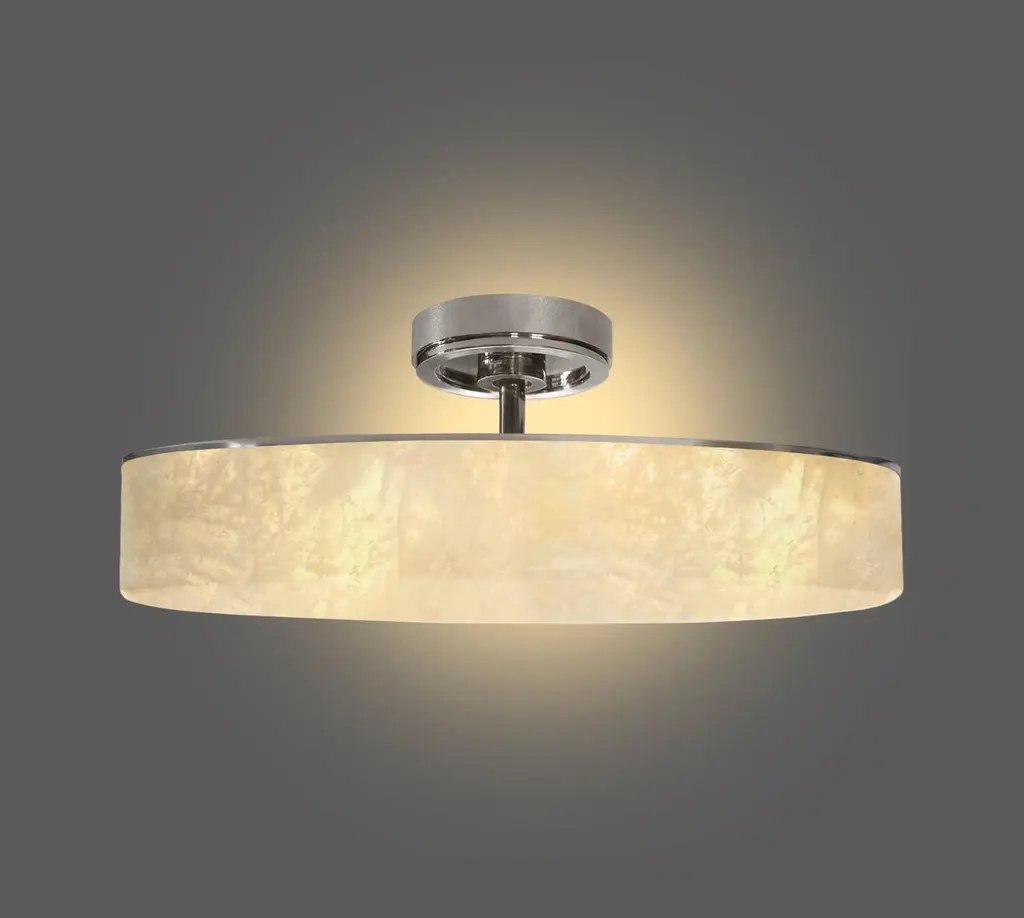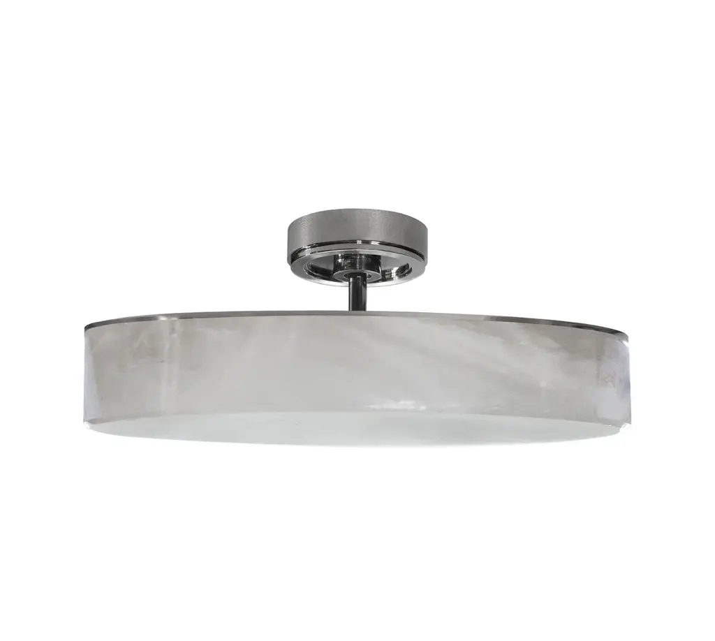 A rock crystal semi flush mount by Phoenix Polished nickel finish. Three E12 socket installed,180w total Custom size and metal finish upon request