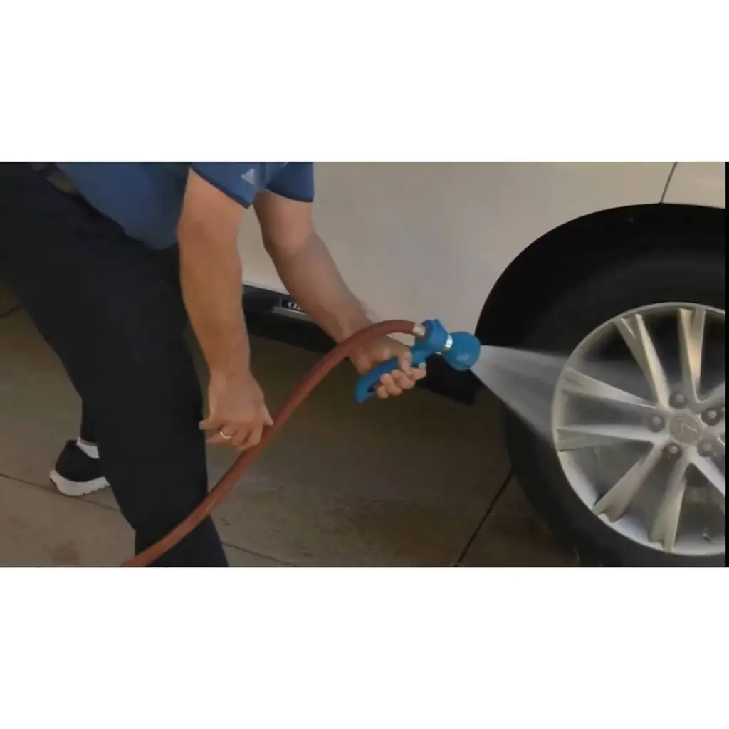 The Ultimate Innovations Fireman's 2-in-1 Flip Handle Hose Nozzle by HISC is powerful enough to clean lawn equipment, concrete drives and walkways, lawn furniture, and vehicles while gentle enough to water delicate flowers and shrubs. Now with a Flip Handle that quickly and easily adjusts from a straight grip to a pistol grip! With five built-in settings, this nozzle allows you to choose the perfect amount of pressure for nearly any job. The distance of the powerful Fireman's Hose Nozzle stream can reach gutters and even second story windows! The Hose Nozzle is constructed of Stainless Steel, Brass, Reinforced Fiberglass and Santoprene Rubber. The nozzle has a Limited Manufacturer’s Lifetime Warranty. Fits any standard 5/8” hose. Great for outdoor cleaning, gardening, car washing and more.