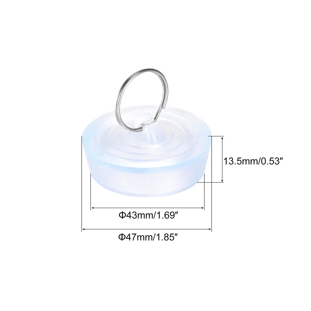 Fit Drain Hole Diameter: 44 - 46mm / 1 3/4" - 1 13/16"Total Size: 43 x 47 x 13.5mm / 1.69" x 1.85" x 0.53"(Min.D*Max.D*T)Made of rubber, durable and easy to clean, effectively preventing sink leakage.Designed with a hanging ring, which makes it easy to remove. A good replacement for the broken, missing, or ineffective drain plug.Rubber drain plugs are suitable for most places, such as bathroom and kitchen sinks, drains, bathtubs, laundry sinks, etc.Made of rubber, durable and easy to clean, effectively preventing sink leakage.Designed with a hanging ring, which makes it easy to remove. A good replacement for the broken, missing, or ineffective drain plug.Rubber drain plugs are suitable for most places, such as bathroom and kitchen sinks, drains, bathtubs, laundry sinks, etc.Specification:Material: RubberTotal Size: 43 x 47 x 13.5mm / 1.69" x 1.85" x 0.53"(Min.D*Max.D*T)Fit Drain Hole Diameter: 44 - 46mm / 1 3/4" - 1 13/16"Package Content: 5pcs x Rubber Drain Stopper