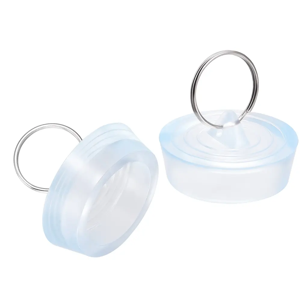 Rubber Sink Plug, Drain Stopper Fit 53-55.5mm With Hanging Ring 2Pcs - Clear Blue - 1.61"x1.77"x0.51" (Min.d*max.d*t)