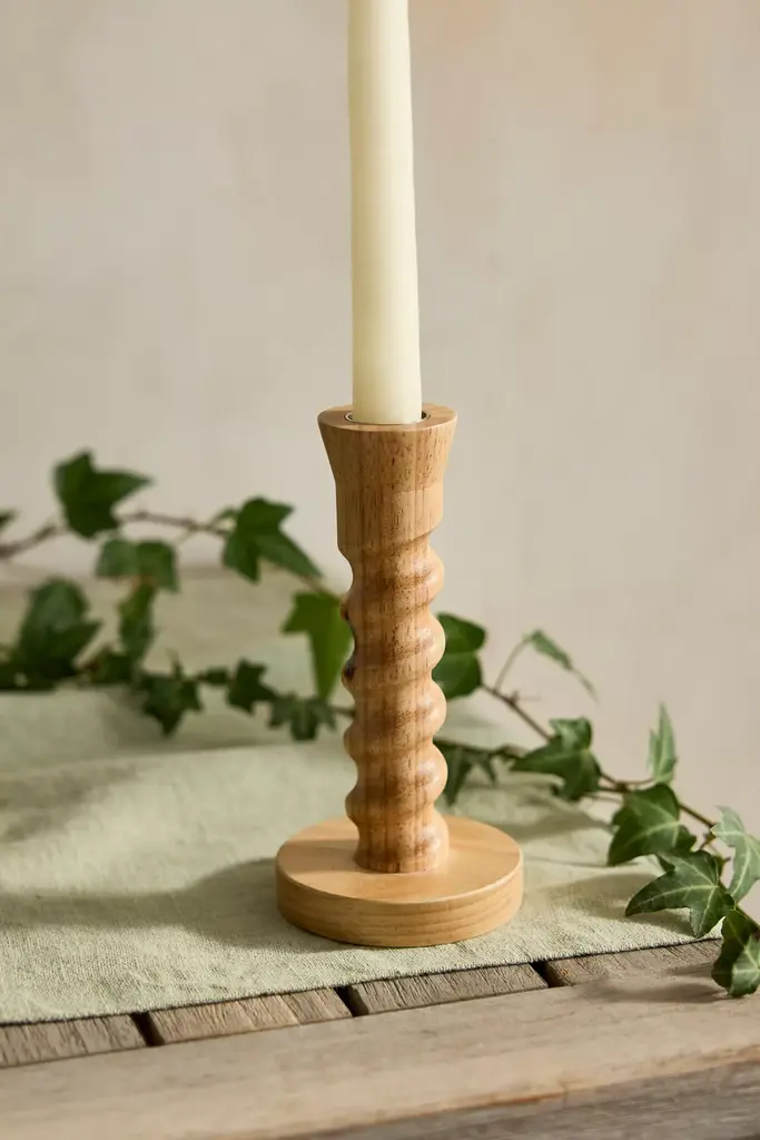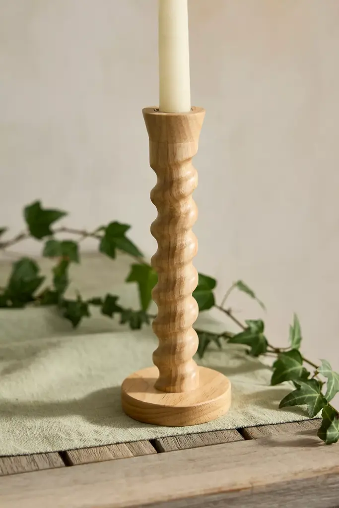 Hand-crafted especially for terrain with a twisty silhouette, this rubber wood holder is designed to display a slender taper candle.