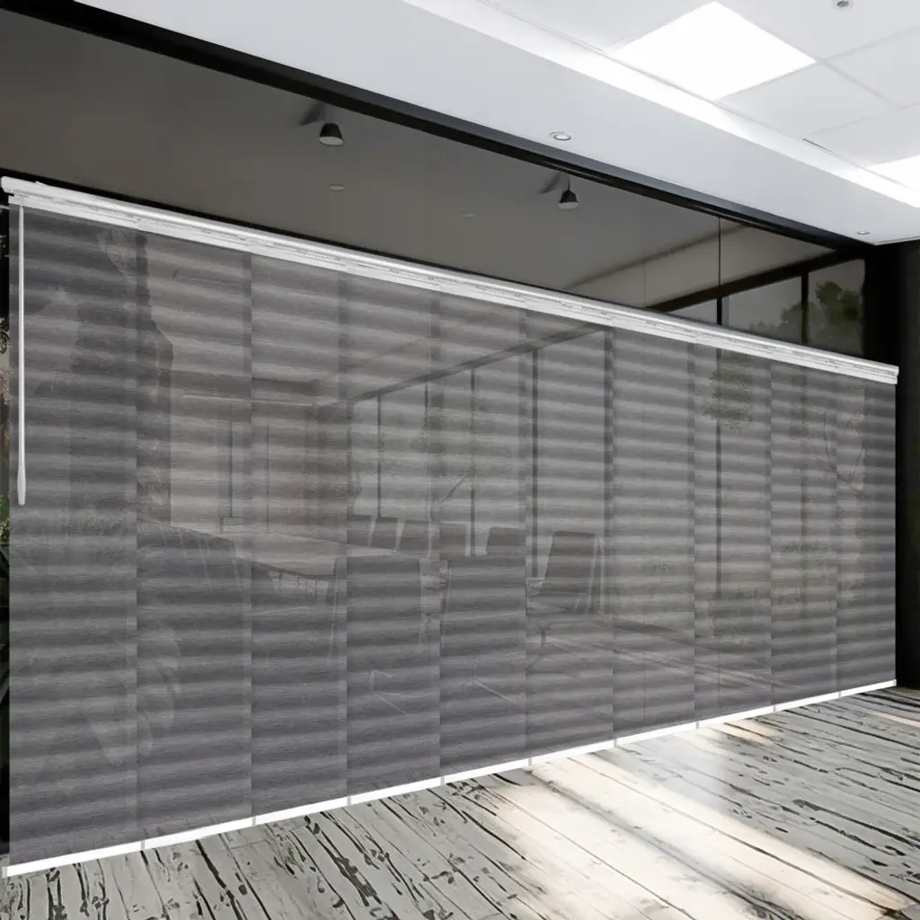 Central Design Products is pleased to introduce a new innovative panel track that offers easy 2-way installation, adding an alluring style and refined touch to your home decor. The double rail design of the track is sleek, compact, and reduces the overall footprint and weight of the installation, eliminating bulky, intrusive window treatments. Adjusting the panel height is a breeze � simply trim the panel, re-attach the liner, and install the panel weight. Detailed instructions are included.The panel track also features a patented slider design, made with aluminum and fitted with bearings that allow for durable and smooth operation. The sliders are stacked closer together than conventional panel tracks, reducing light bleed coming from the gaps between panels. This track has endless uses from dividing rooms, garages, offices, and closets to decorating windows and patios. Available in smaller sizes including 3, 4, 5, 6, and 7 panels. Extends from 120-218� wide. Each panel measures 23.5" wide and 116" tall, with a total installation height of 118.5" (includes the 2.5" rail track). The track can be wall or ceiling mounted. The panels can stack on the left or the right. The clearance from the wall is extendable from 1.25� to 3.25� and projection from the wall is extendable from 3� to 4.25�. Rubi panel is made from 100% Polyester, with a light filtering shade that blocks 50% of the light.