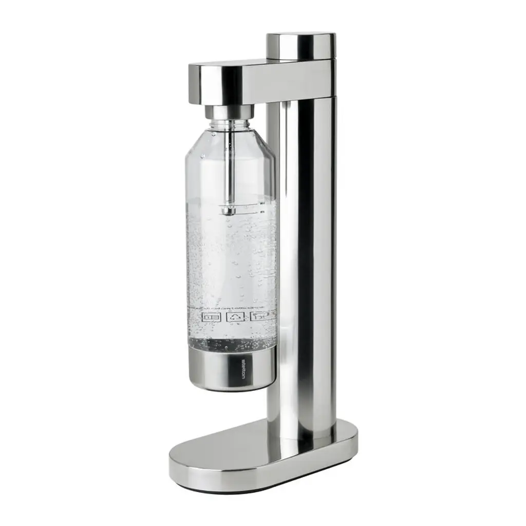 Mysoda's Ruby 2 is a second-generation sparkling water maker with a delightfully minimalist and timeless design. Made from aluminum, the device has an improved scratch-proof finish that gives it an elegant, luxurious matte sheen – Ruby 2 will surely be the crown jewel of your kitchen! Ruby 2 is very quiet and easy to use: it has a quick-lock mechanism for the bottle and an antifreeze nozzle that allows you to carbonate even ice-cold water. The device works entirely without electricity, so it will easily find its place in home kitchens, holiday homes and office spaces. Ruby 2 has been awarded the Red Dot Award in 2023. Please note: The sparkling water maker comes with one reusable drinking bottle. Please note that the water bottles used in Mysoda sparkling water makers have an expiration date. Extra bottles are available separately. Ruby 2 does not contain a carbon dioxide cylinder, but the device is compatible with standard carbon dioxide cylinders.