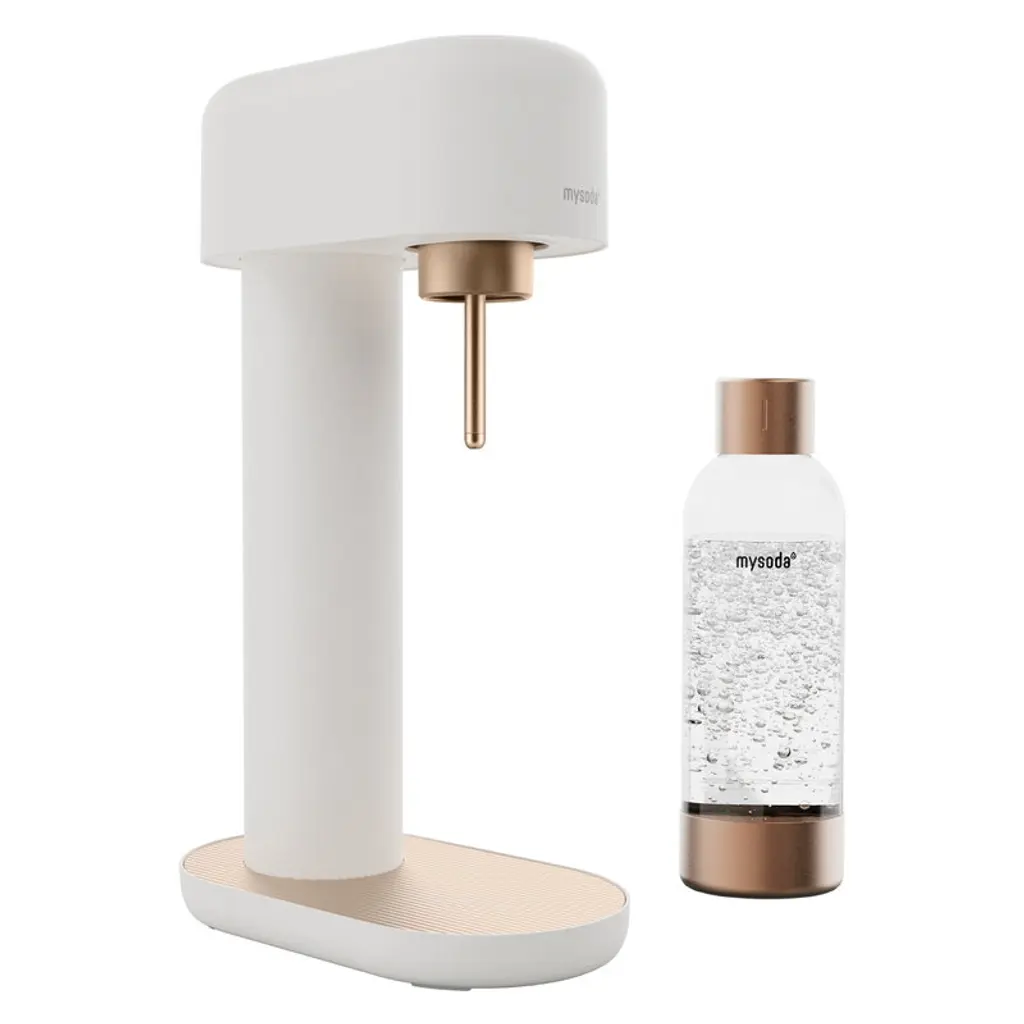 Mysoda's Ruby 2 is a second-generation sparkling water maker with a delightfully minimalist and timeless design. Made from aluminum, the device has an improved scratch-proof finish that gives it an elegant, luxurious matte sheen – Ruby 2 will surely be the crown jewel of your kitchen! Ruby 2 is very quiet and easy to use: it has a quick-lock mechanism for the bottle and an antifreeze nozzle that allows you to carbonate even ice-cold water. The device works entirely without electricity, so it will easily find its place in home kitchens, holiday homes and office spaces. Ruby 2 has been awarded the Red Dot Award in 2023. Please note: The sparkling water maker comes with one reusable drinking bottle. Please note that the water bottles used in Mysoda sparkling water makers have an expiration date. Extra bottles are available separately. Ruby 2 does not contain a carbon dioxide cylinder, but the device is compatible with standard carbon dioxide cylinders.
