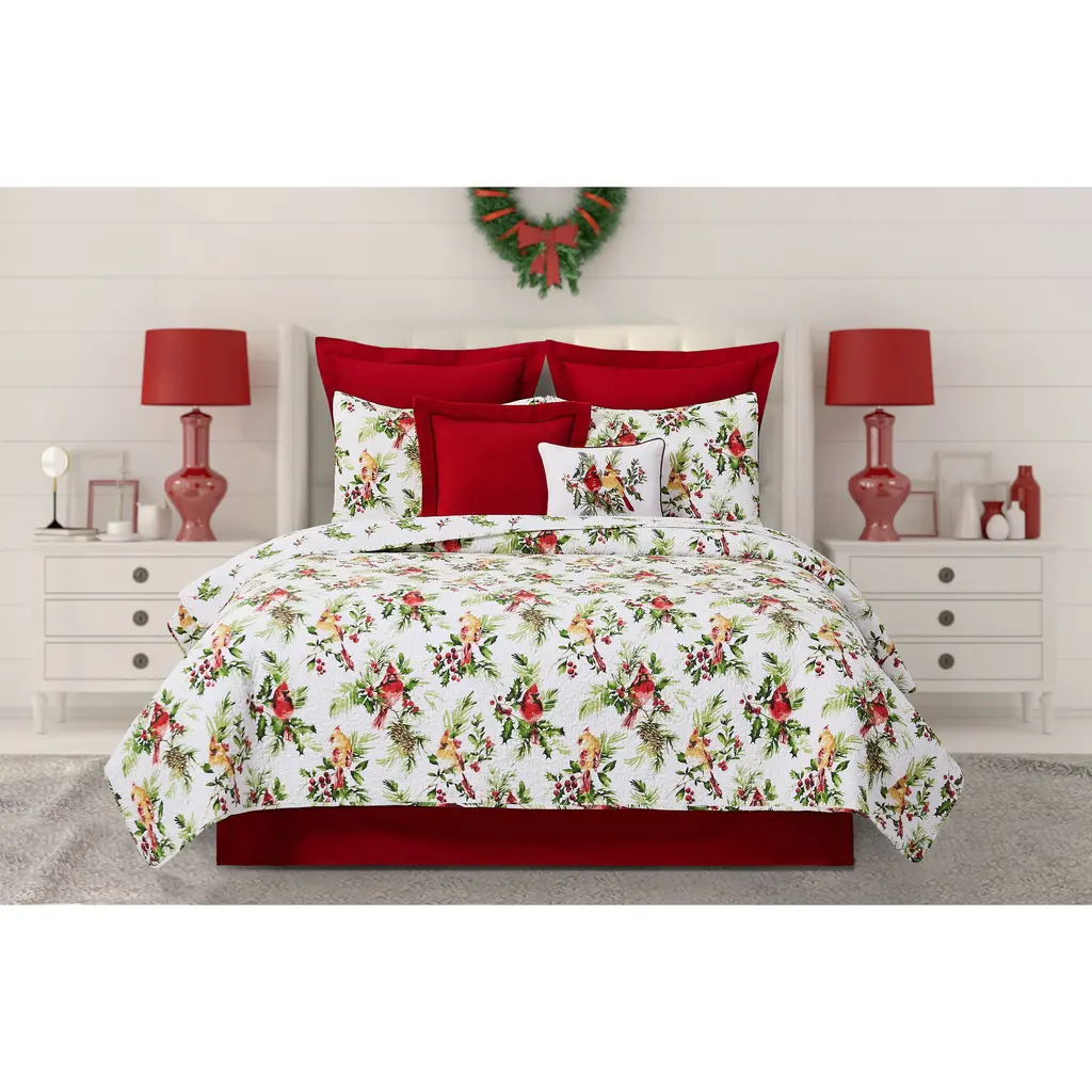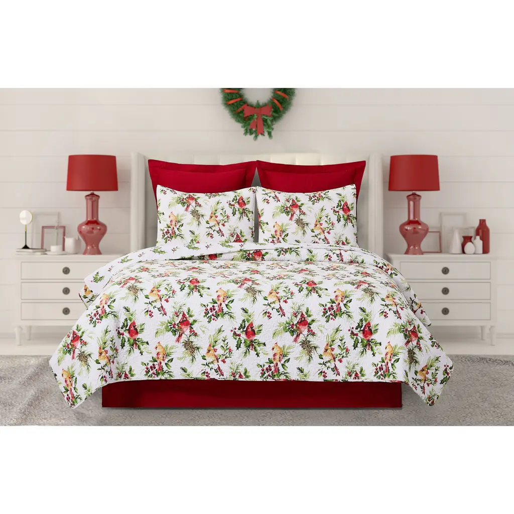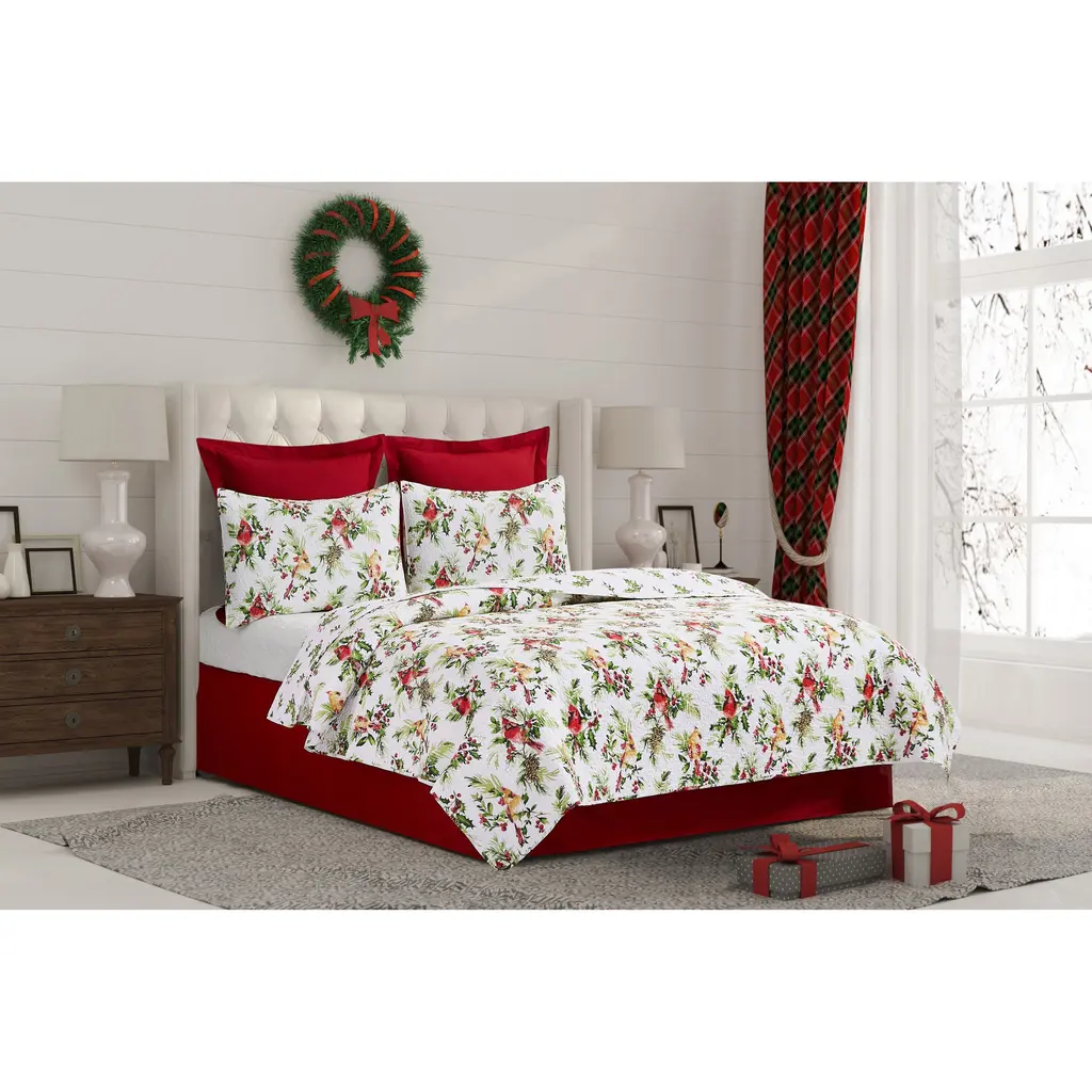 Ruby Cardinal 3 Piece Cotton Christmas Quilt Set - King