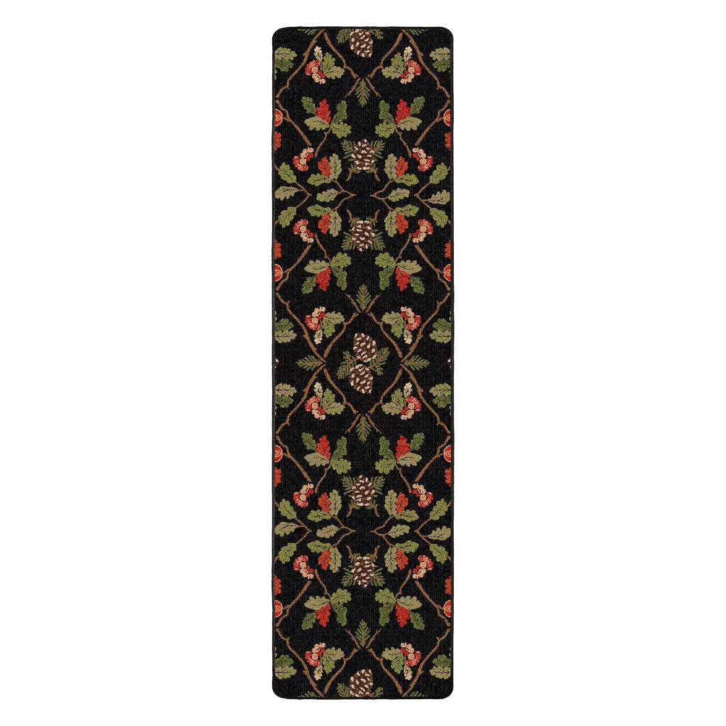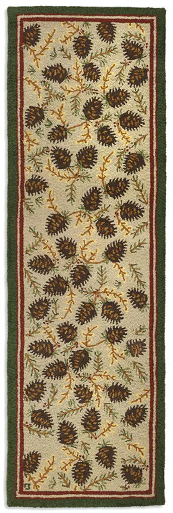 Create the feel of a cabin nestled in the woods at your own home with our Ruby Pinecones Hand-Hooked Wool Hearth Runner.Designed by American Folk Artist Laura Megroz in Vermont, this hooked rug offers colorful, rustic charm that will give you that cabin-getaway feel. Featuring boughs of pine cones on a rich, ruby red background.Crafted from New Zealand wool, it features all the benefits of a natural wool – durable, fire-resistant and long-lasting. The hooked construction makes this rug extremely tough and can be used as comfy fireside seating, underneath a dining table or in your family room.Shake out or vacuum regularly; spot clean as needed. Imported.