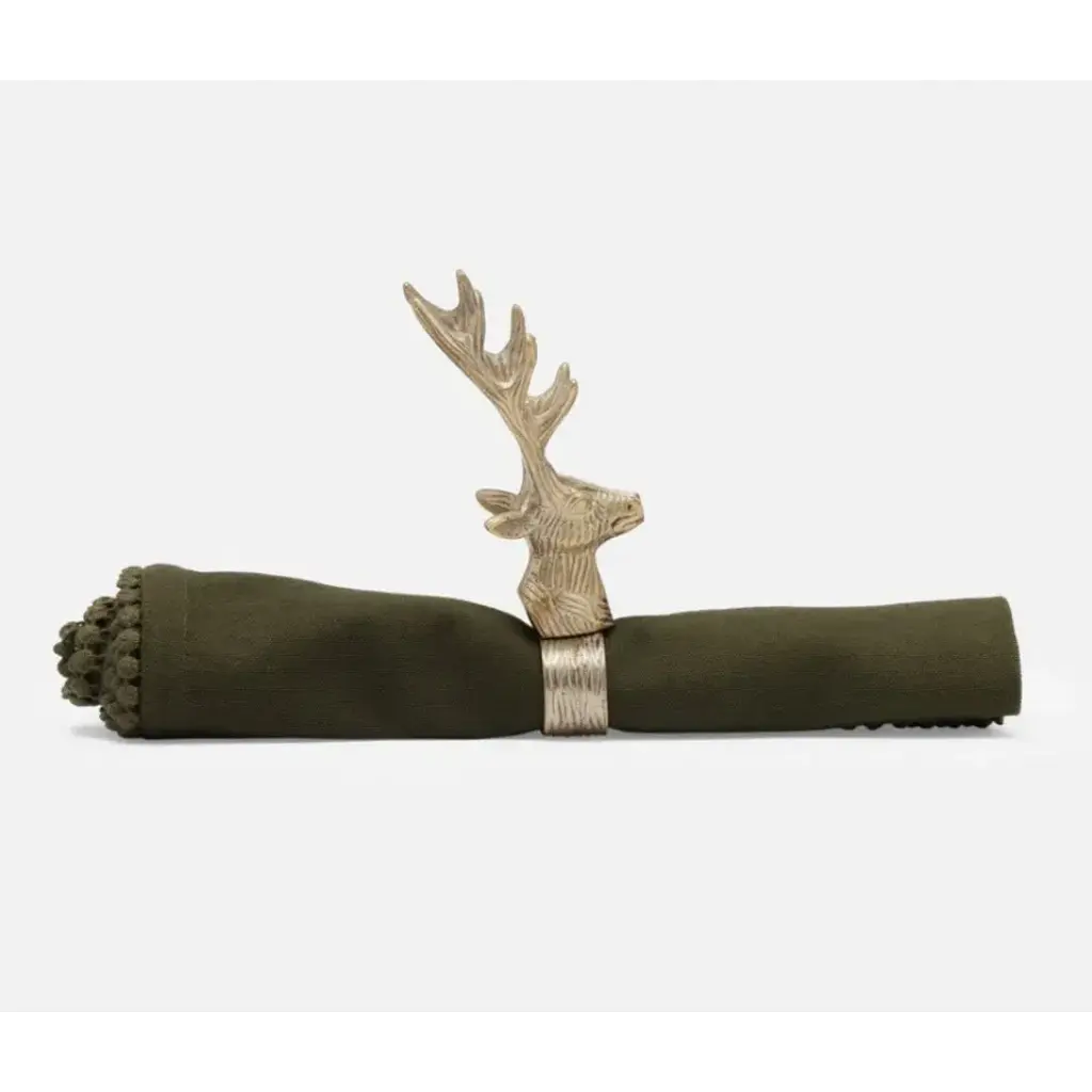 Rudolph is sure to spark conversation around any dinner table. The unique, triangle ring design allows Rudolph to stand up in all his stately glory. Comes in Antique Gold or Tarnished Silver. Blue Pheasant's products are handmade with care by artisans using natural materials. They are not mass produced, so variation between products should be expected, and this is why we love them! It is these irregularities that makes Blue Pheasant what it is—a special brand whose collections are distinctly handmade, full of charm and originality you’ll never find in machine-made products.