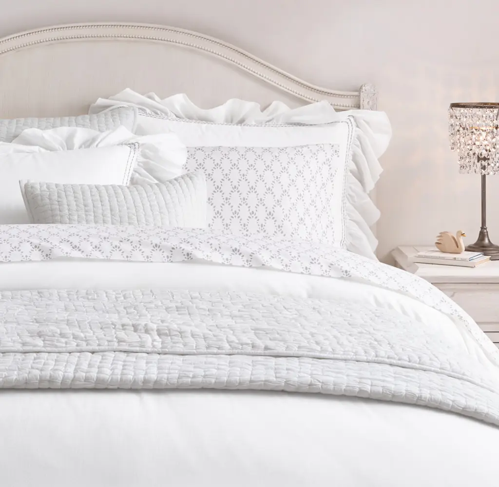 Ruffled Voile & Petite Trellis Bedding Collection - Grey