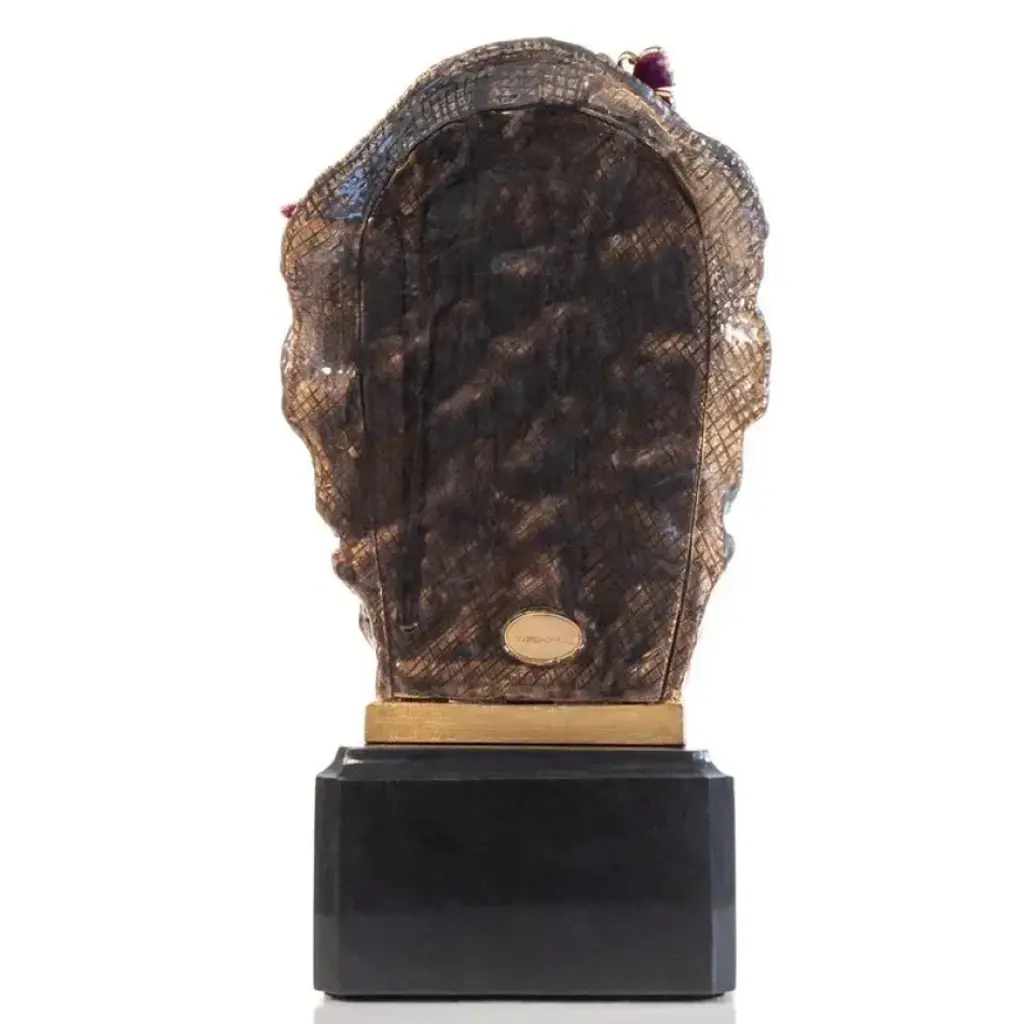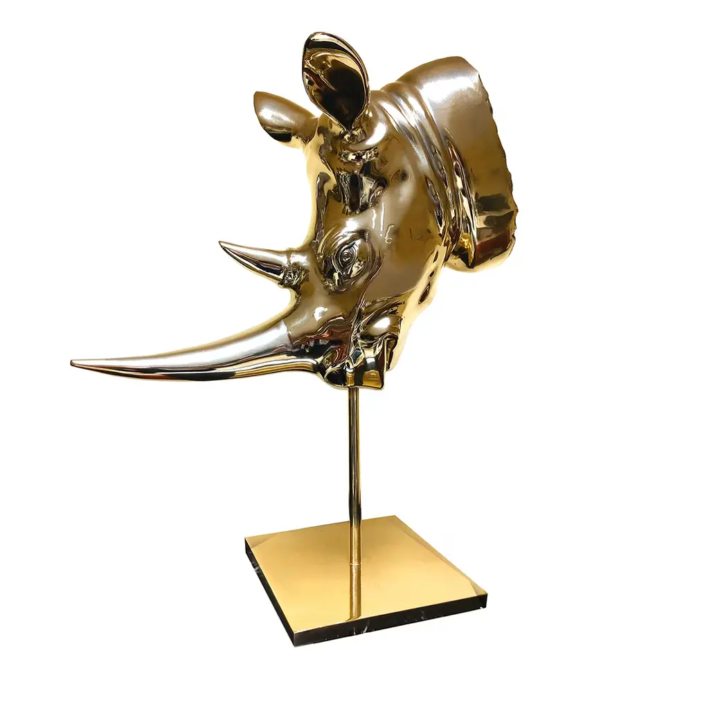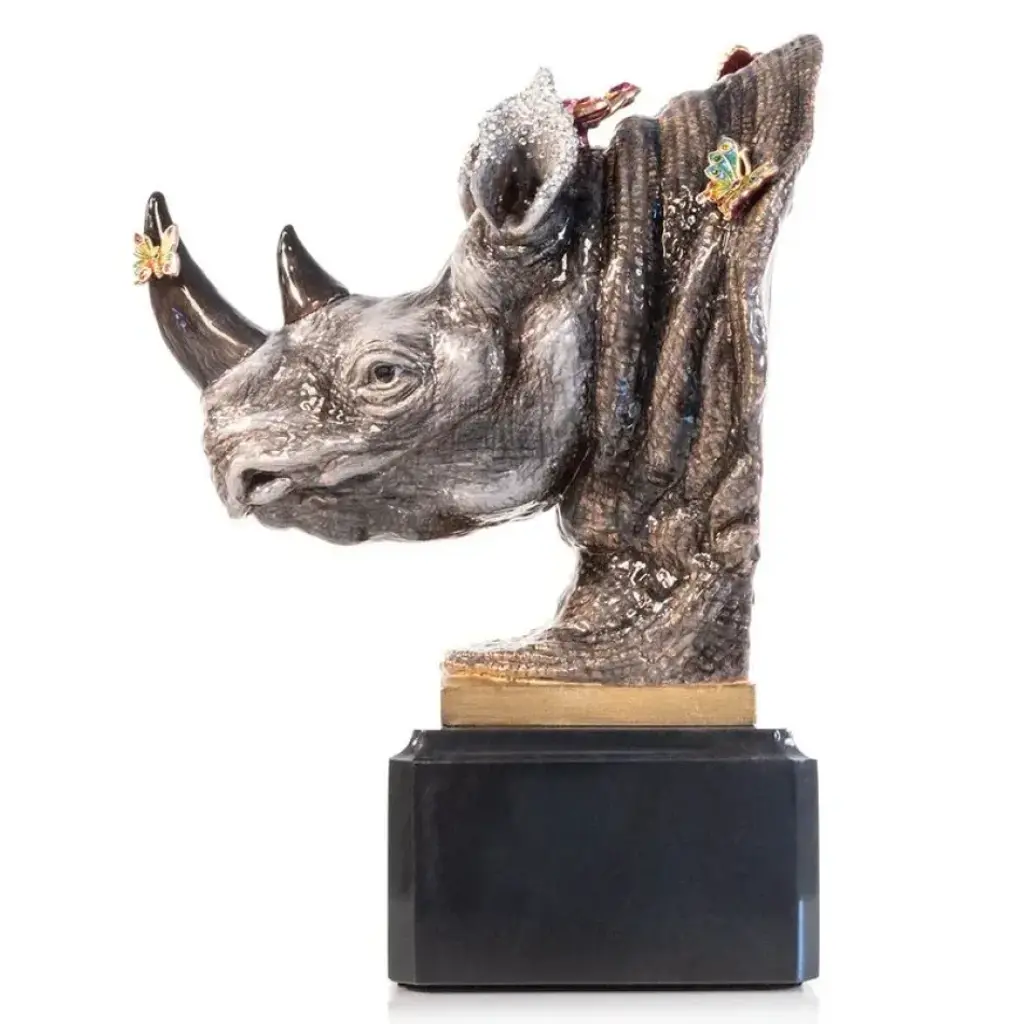 Atop a base of jet-black marble, this hand-enameled rhinoceros bust has been masterfully created in painstaking detail by our Rhode Island artisans. He is accompanied by six delicate, colorful butterflies, each of them finished in 14k gold and Swarovski®crystals.