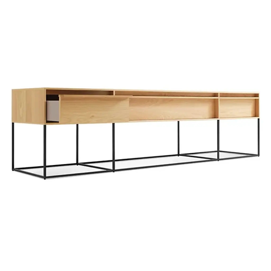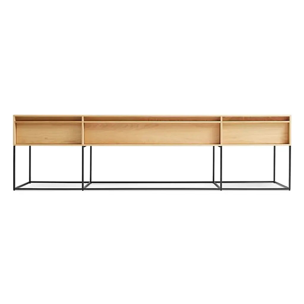 A modern product that truly lives up to its name. The Rule Long and Low by Blu Dot features a geometrically eye-catching appearance with its prominent angles and sleek powder-coated base. Its dusk drawer interiors and soft close drawers make this piece ideal to place in any living room or dining room. Choose from the variety of handsome veneers that will match your contemporary home best. Ships fully assembled.
