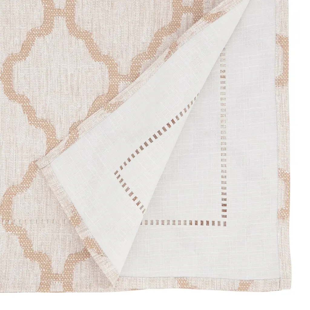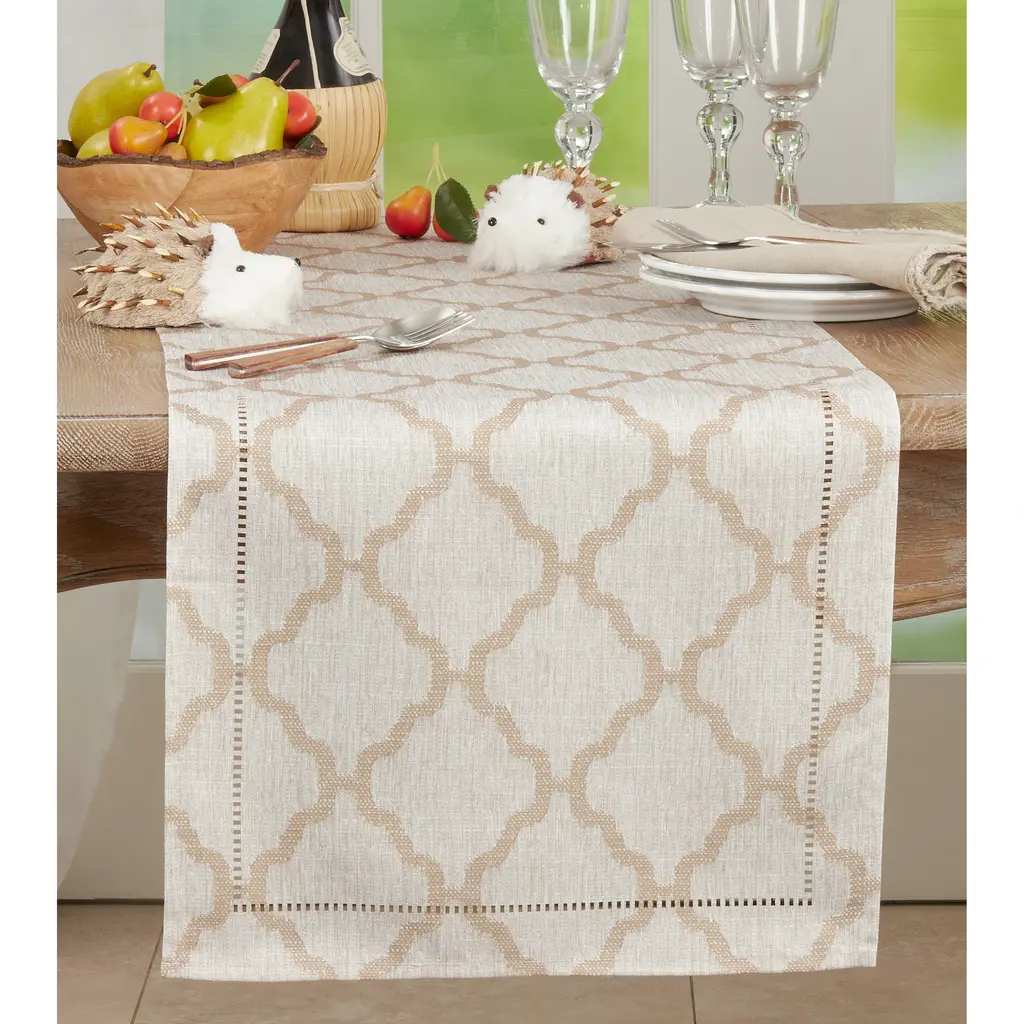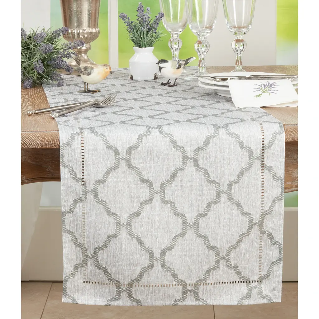 Complete your table decor with this unique, Moroccan style runner that provides a discrete background for the table setting. Its versatile and modern style is just what you need for a coordinated look. Perfect for multiple occasions, the Hemstitch Laser-Cut Table Runner can be paired with different types of dinnerware.Features: