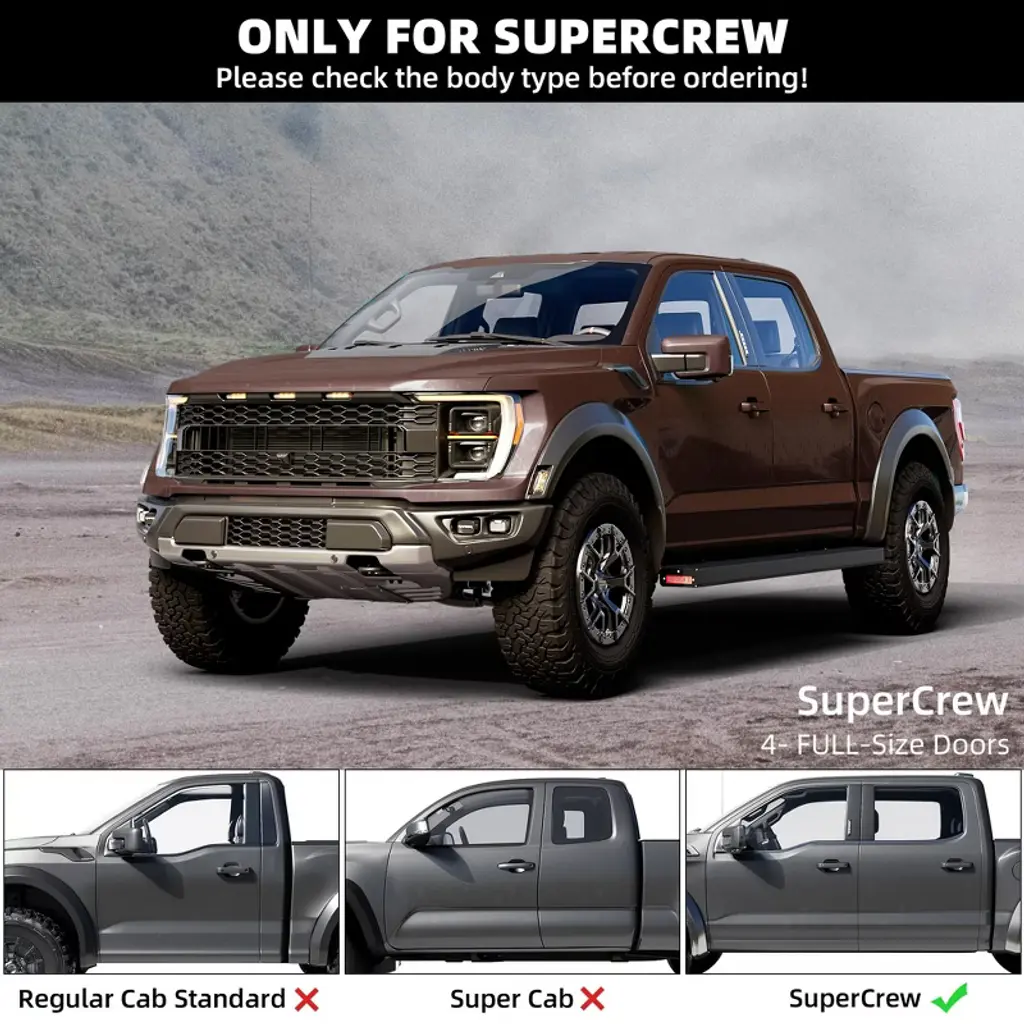Running Boards [6.5 Inches] Compatible With 2015-2024 Ford F-150 Supercrew Cab (4 Full-size Doors)