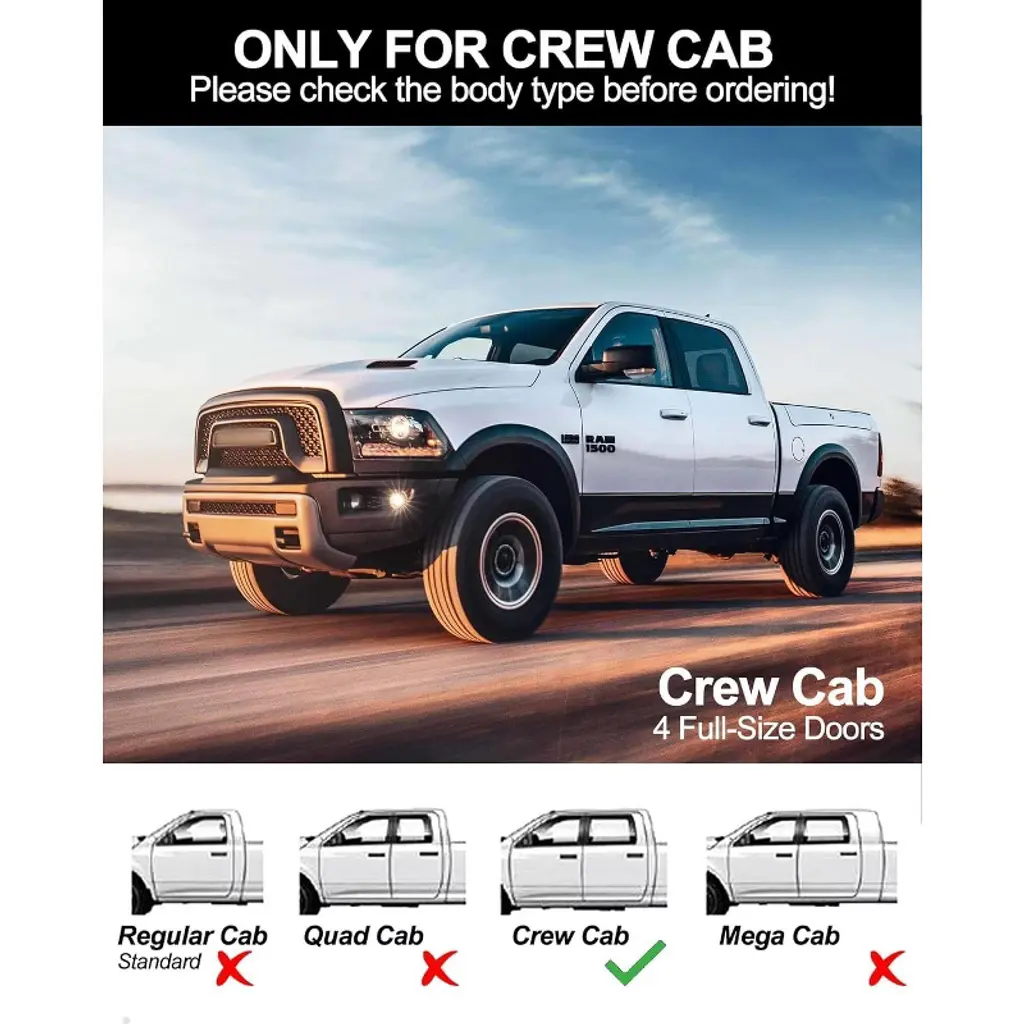 Custom Fit:Vehicle specific for 2009 2010 2011 2012 2013 2014 2015 2016 2017 2018 2019 2020 2021 2022 2023 Ram 1500 crew cab(2019 2020 2021 2022 2023 Ram 1500 classic only,2019-2024 Ram 1500 new body are excluded).It also fits 2010 2011 2012 2013 2014 2015 2016 2017 2018 2019 2020 2021 2022 2023 2024 Ram 1500 crew cab