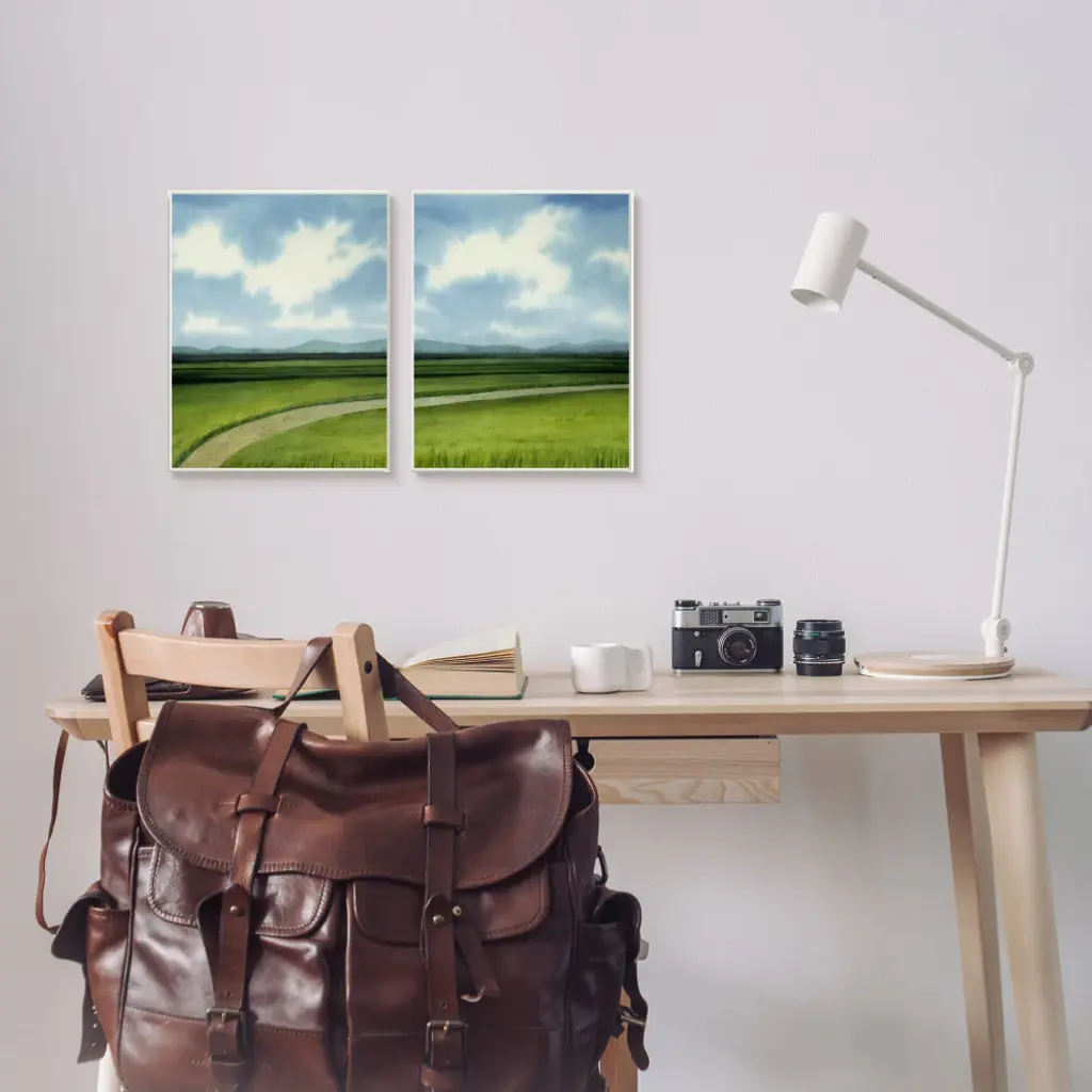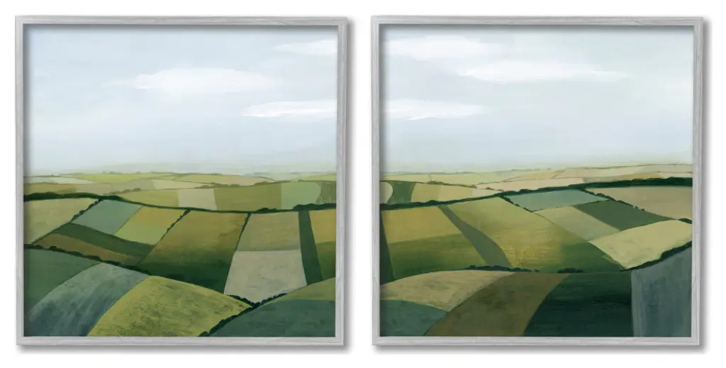 Rural Cloudy Countryside Green Fields Design, 2Pc, Each 10 X 15