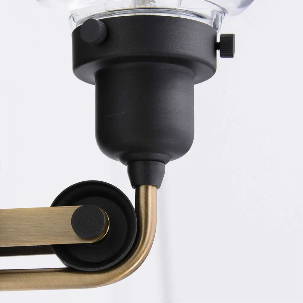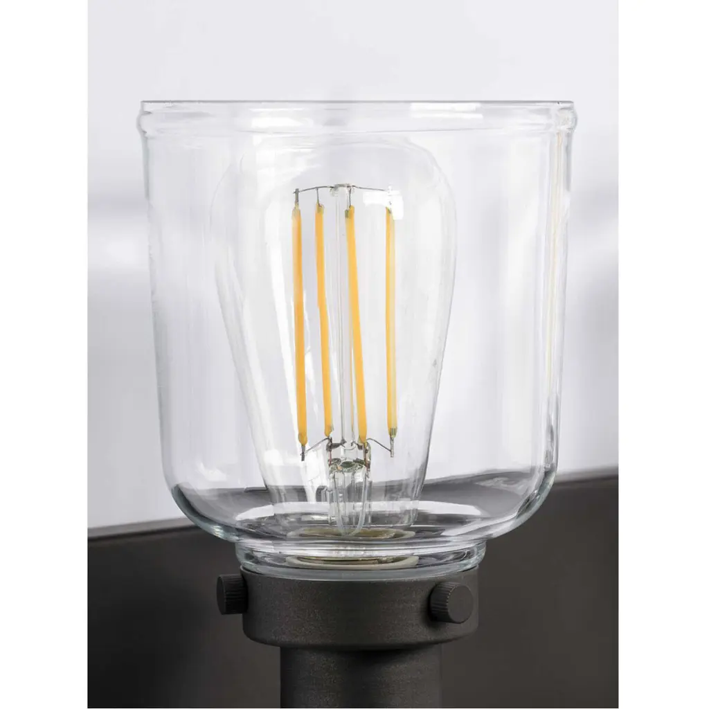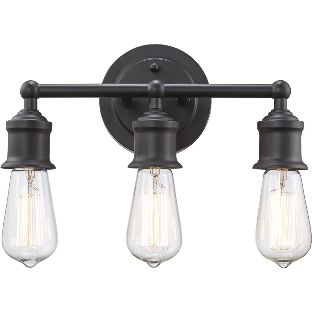 Give a nod to days of old with the Rushton three-light bath. A timeless trilogy of exposed bulbs enveloped in clear glass shades dangle from antique-style sockets. Antique Brass tube arms wind around mechanical pulley wheels as they anchor the bulbs to the Graphite-finished backplate. This ensemble of historical elegance is a must-have as a bath vanity or wall sconce in industrial and farmhouse settings.