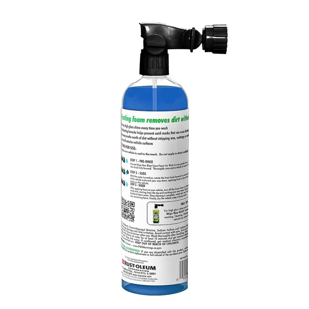 Rust-Oleum Wipe New Blast Snow Foam Car Wash delivers a thick, clinging foam that lifts away dirt and grime for a powerful, touch-free clean. Designed for use with a standard garden hose, its easy-to-use sprayer provides fast, even coverage across your entire vehicle. The gentle yet effective formula is safe on all exterior surfaces and won’t strip away waxes or protective coatings. Each 30 oz bottle offers enough coverage to clean 6–8 standard-sized vehicles, making it perfect for regular maintenance or deep cleaning. After rinsing, it leaves behind a streak-free, glossy finish that enhances your vehicle’s shine. Whether you're prepping for a drive or just love a clean car, this snow foam wash makes detailing effortless and effective.