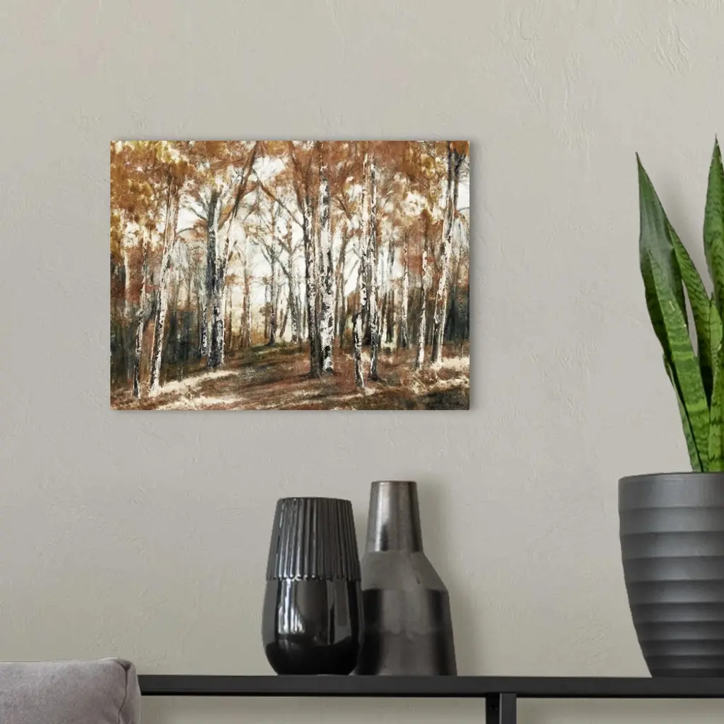 Rusted Hearth Birch Trees wall art for home and office decor. Discover canvas art prints, photos, mural, big canvas art and framed wall art in GreatBigCanvas.com's varied collections.