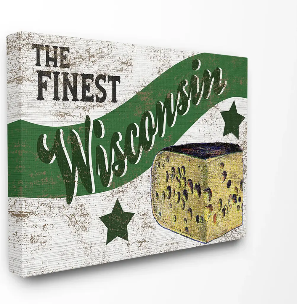The Stupell Home Decor Collection Rustic Americana Star Crate Finest Cheese Wisconsin State XXL Stretched Canvas Wall Art, 30 x 1.5 x 40, Proudly Made in USAProudly made in the USA, our stretched canvas is created with only the highest standards. We print with high quality inks and canvas, and then hand cut and stretch it over a 1.5 inch thick wooden frame. The art comes ready to hang with no installation required. Not to mention, at this size, it is sure to be the focal point of any room!