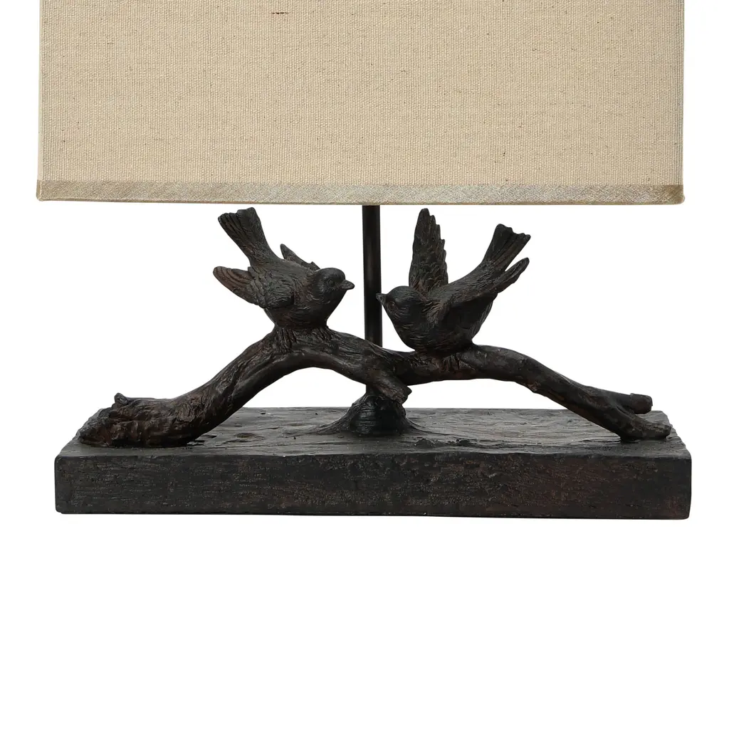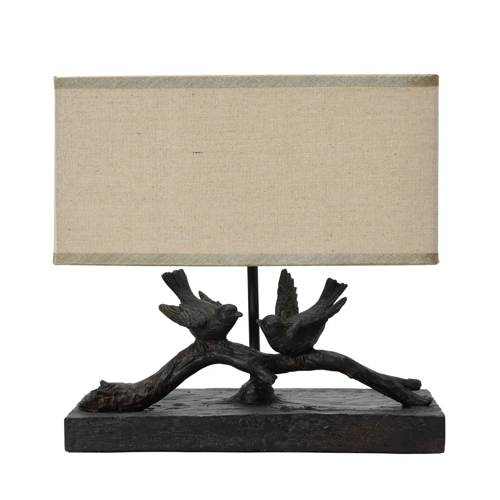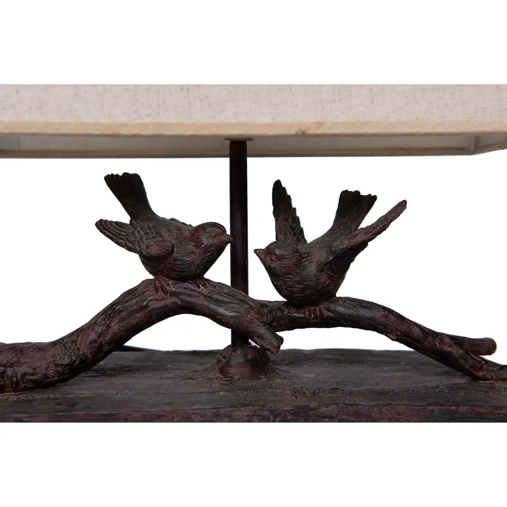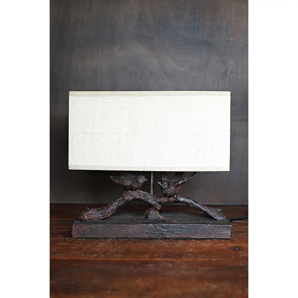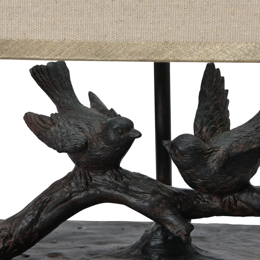 Rustic Birds-On-Branch Lamp With Rectangle Shade - Black