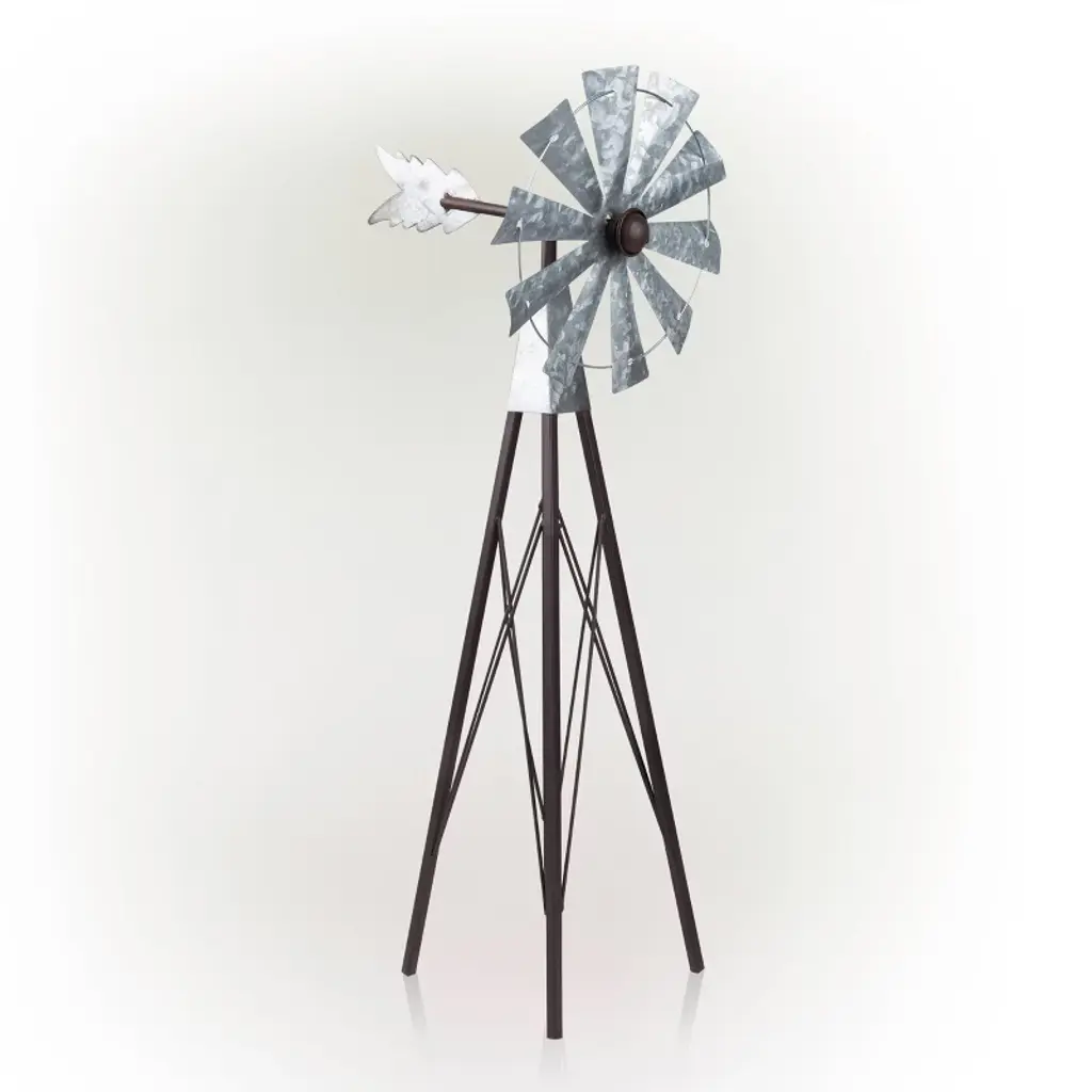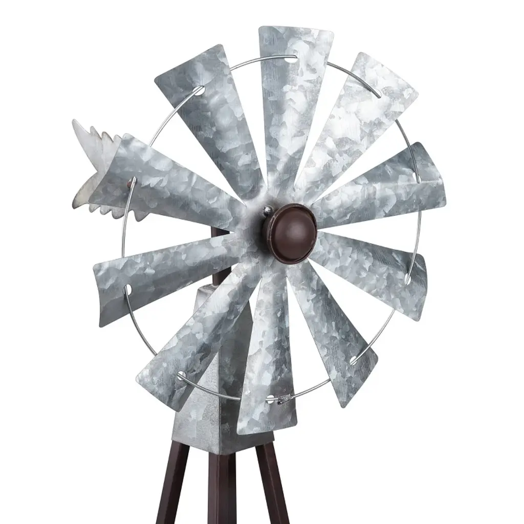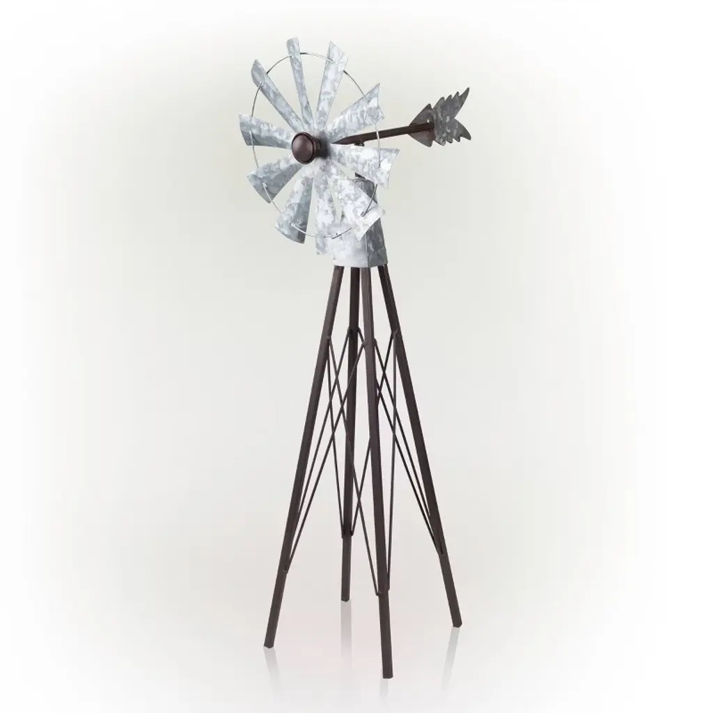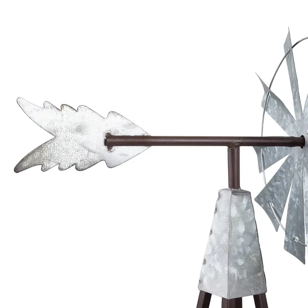 Rustic Bronze & Silver Metal Mini Windmill - Alpine Corporation: Garden Decor, Iron Construction