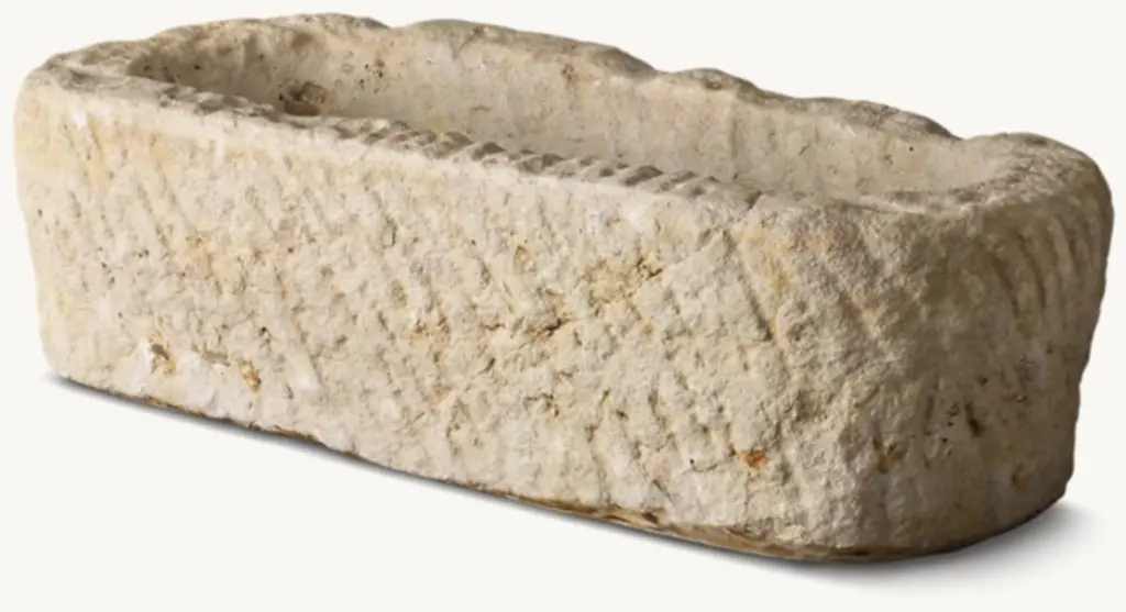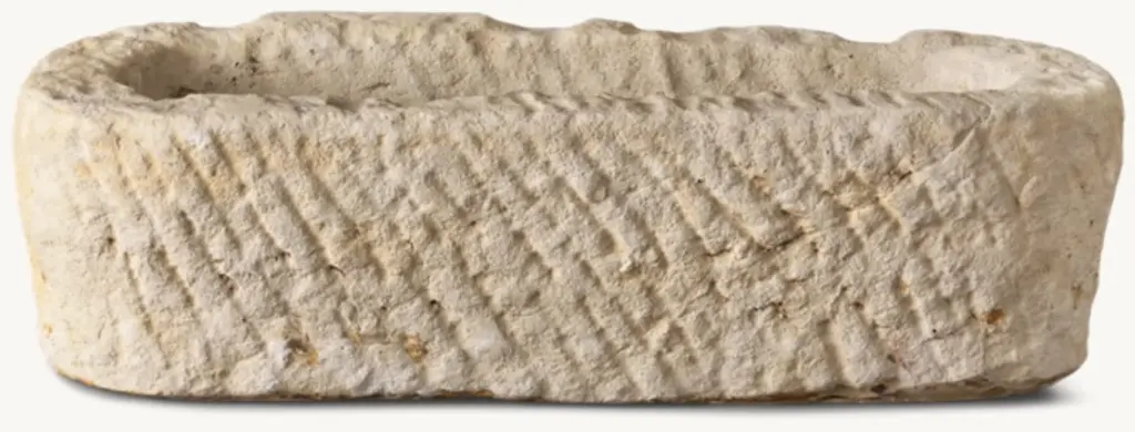 Rough-hewn texture and a hand-applied patina replicate the look of aged stone on our collection of rustic vessels.