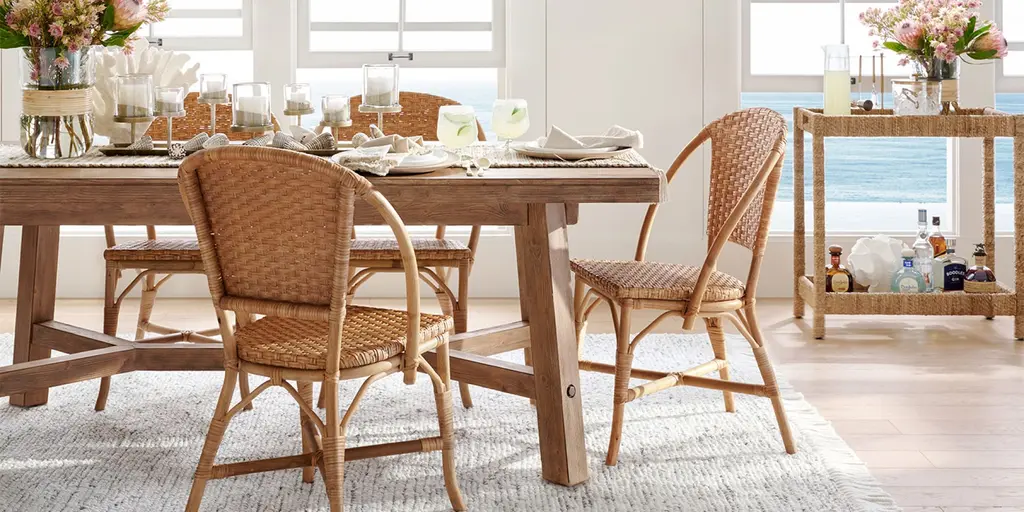This collection has a simple farmhouse design that lets the craftsmanship shine. With its rustic form, angled legs, and warm wood, each piece lends a timeless look to any home. Two breadboard leaves take the table from family meal to dinner party.
