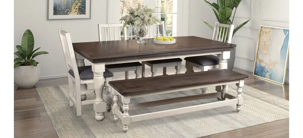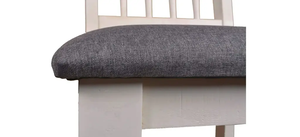 Farmhouse charm with a modern vibe, these beautiful armless Rustic French Dining Chairs Set of 2 will add coastal living style to your lake house, country chic cottage or high rise. Romantic antique white finish brightens your living space while the grayish brown seat will blend with your traditional decor. Thick baluster legs add warmth and elegance. Comfortable padded seat is wrapped in an easy to clean, durable upholstery fabric providing comfort with contemporary style. Like the surf hitting the sand, have one room flow into the other.