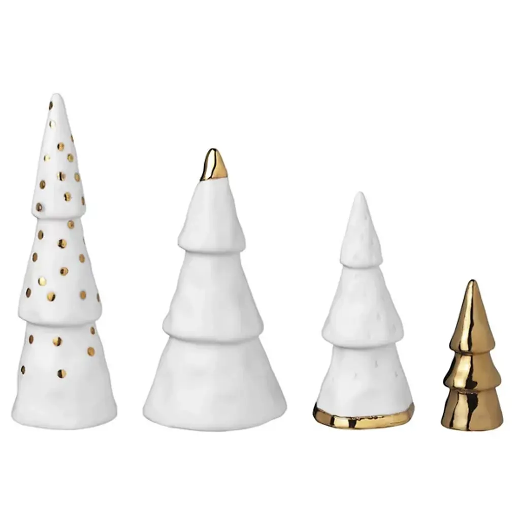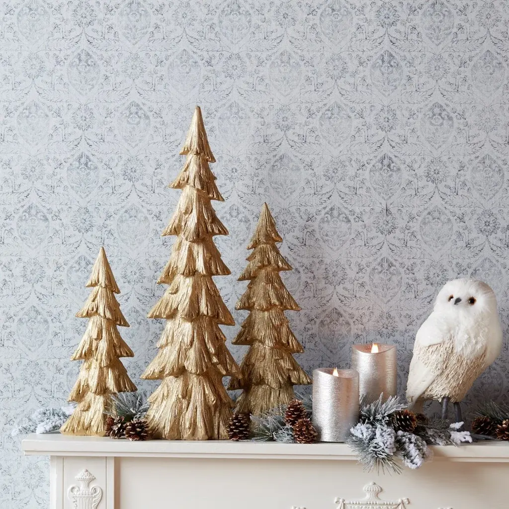 Deck your home with the perfect holiday decor! Our set of tabletop Pine Trees instantly adds warmth and brightness to your home. With its chic glittered gold finish and rustic pine tree design, these trees are sure to impress. Crafted from durable polyresin, they'll light up any table display or mantle all season long. Display the pieces together to make a statment, or display them alongside other decor pieces to accent the space. -Measures 9 x 5 x 25; 6.5 x 5 x 18; 6 x 3.25 x 15" -Primary Material: Resin -Recommended for indoor use only