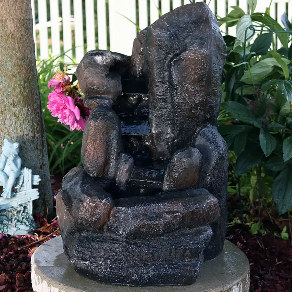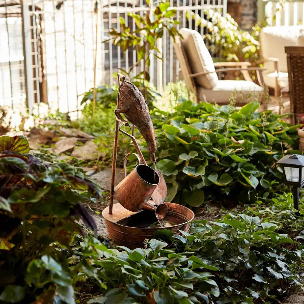 Rustic Metal Fountain With Duck And Watering Can 33"