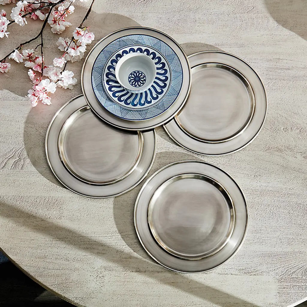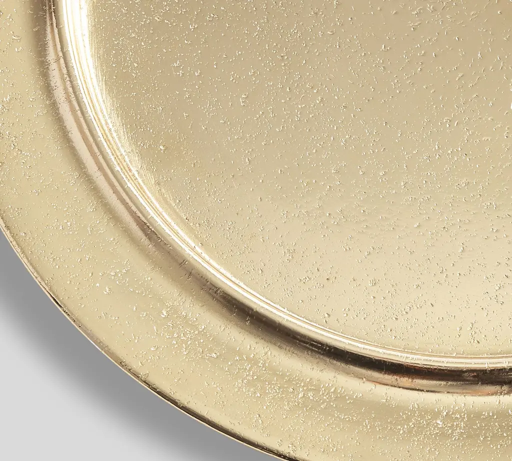Inspired by vintage European serving dishes, this hand-cast charger features a rough-hewn finish and organic texture that reflects the natural imperfections of the molding process. Each piece is unique. The rustic-luxe look effortlessly transforms a table and creates an unforgettable presentation.