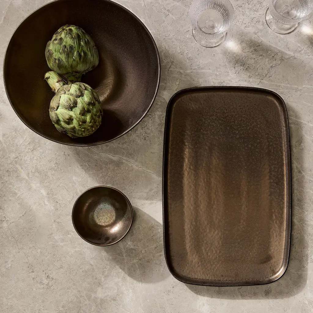 Inspired by vintage European serving dishes, this hand-cast platter features a rough-hewn finish and organic texture that reflects the natural imperfections of the molding process. Each piece is unique, creating a distinctively rustic yet luxe look. Define your table for years to come with this soon-to-be heirloom.
