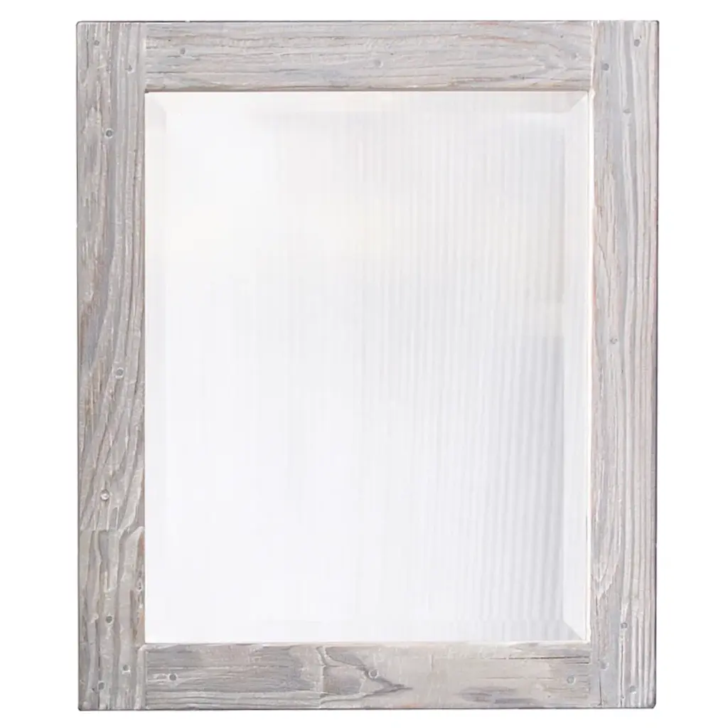 Barnwood Mirror with Cornerblocks with Farmhouse StyleFramed with cornerblock barnwood, this mirror is great for rustic lodge or western country farmhouse. This mirror is large enough to accent a credenza, hall table or fireplace mantle. Our customers love using this style as a bathroom mirrors as well. Includes corner block barn wood frame, mirror glass and hanging hardware. Made in the USA.Product Specifications:Due to the nature of reclaimed wood, each mirror features unique colors, textures, knots, grains, style and charm. Yours will be one-of-a-kind!Mirrors are sold according to to their exterior dimensions. Hanging hardware included