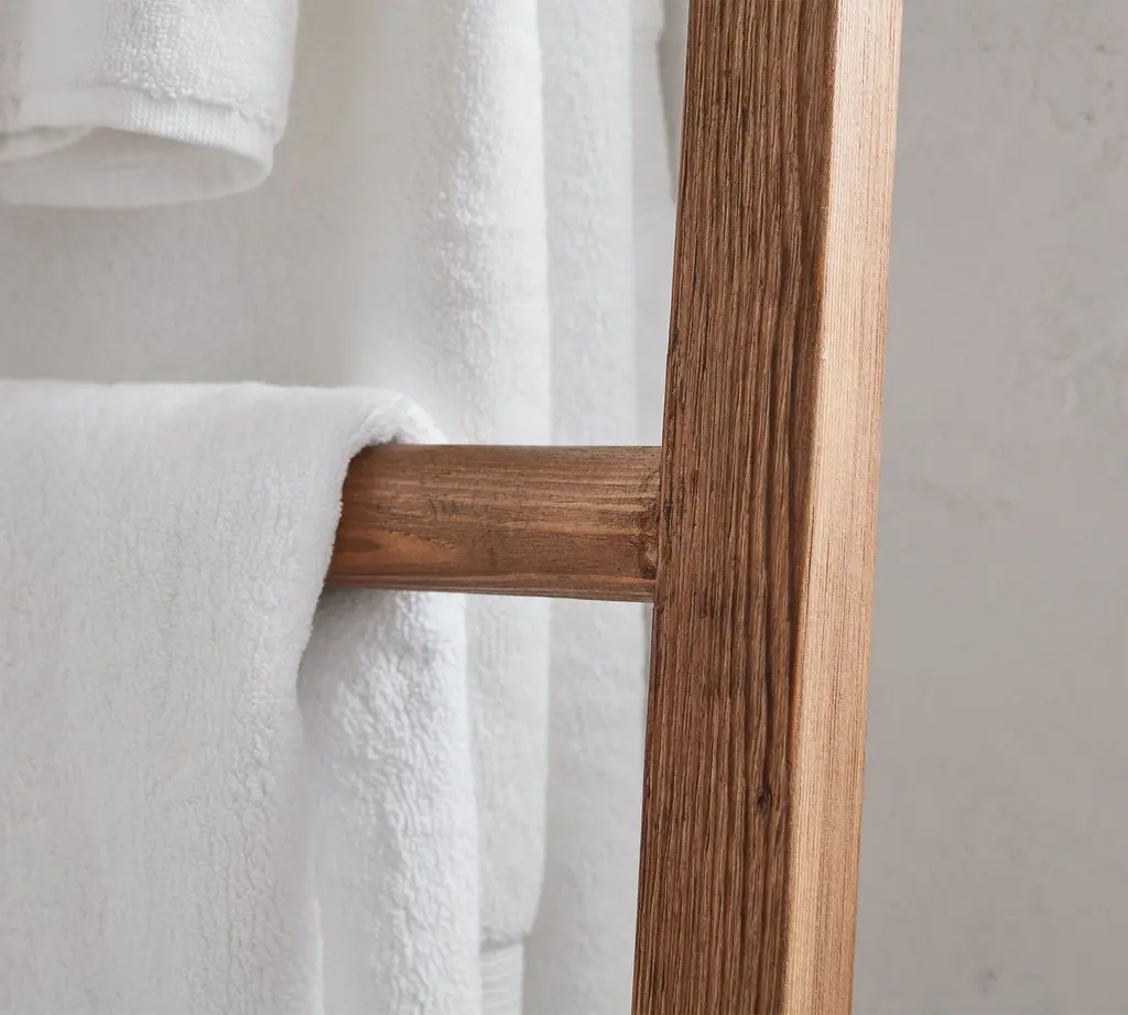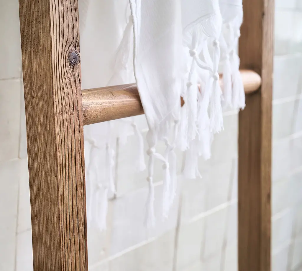 Smartly use your wall space in a small bath with our Rustic Bath Ladder. Hang towels up to dry in between uses for a savvy and stylish display. From the sourcing of salvaged wood to manufacturing in a Fair Trade Certified™ factory, this ladder is mindfully made.