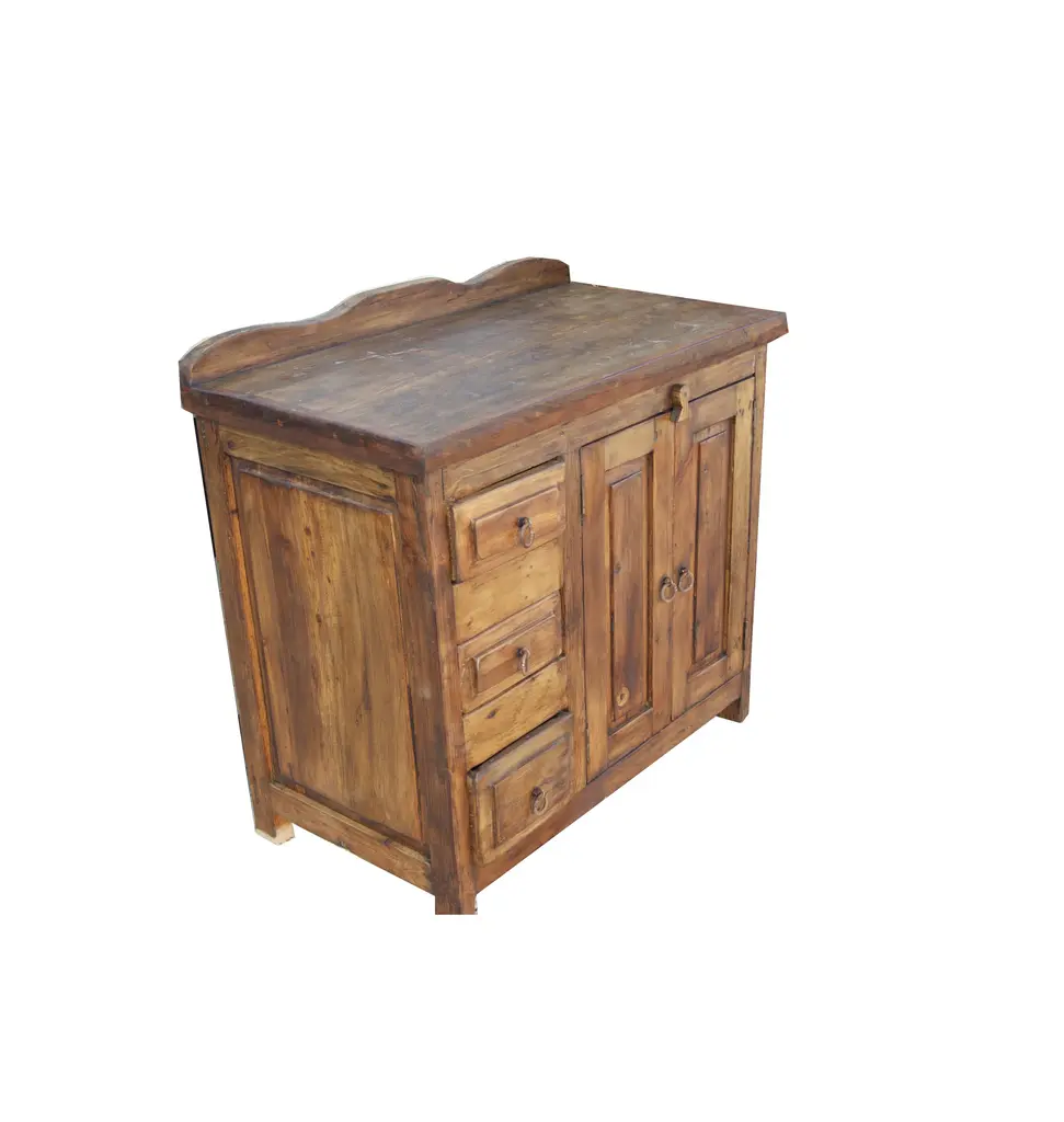 This beautiful Rustic Vanity is made from recycled wood and sanded down to a soft touch. It has a backsplash that gives it that unique look. It has an open back to allow for plumbing.Our vanities are made by talented craftsmen in Mexico and are built with recycled pine wood. Please expect slight variations in the vanity for each peace is made to order.Doors and drawers will be scaled to size.