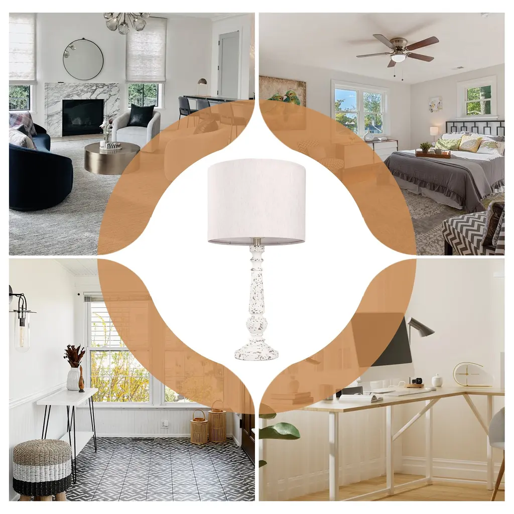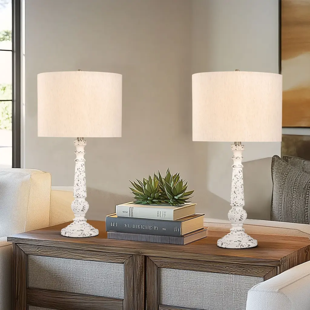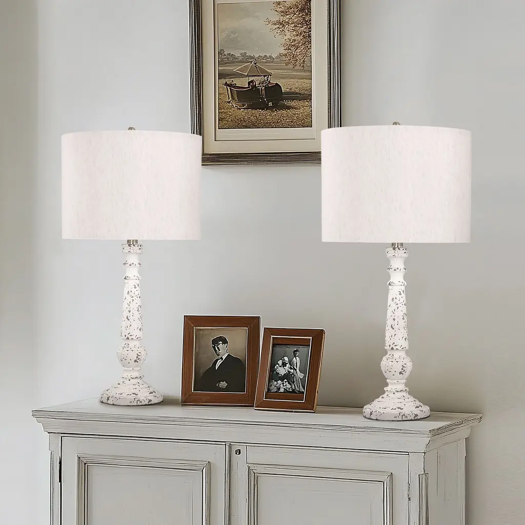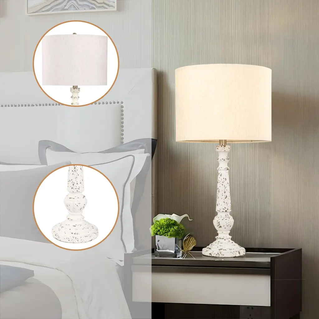 Rustic Table Lamp Bedside Linen Shade Nightstand Lamp Set Of 2 - White-2Lights