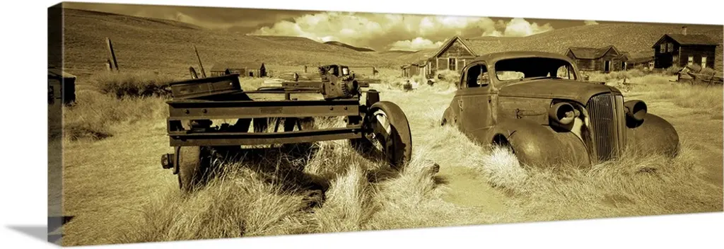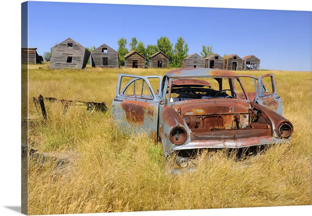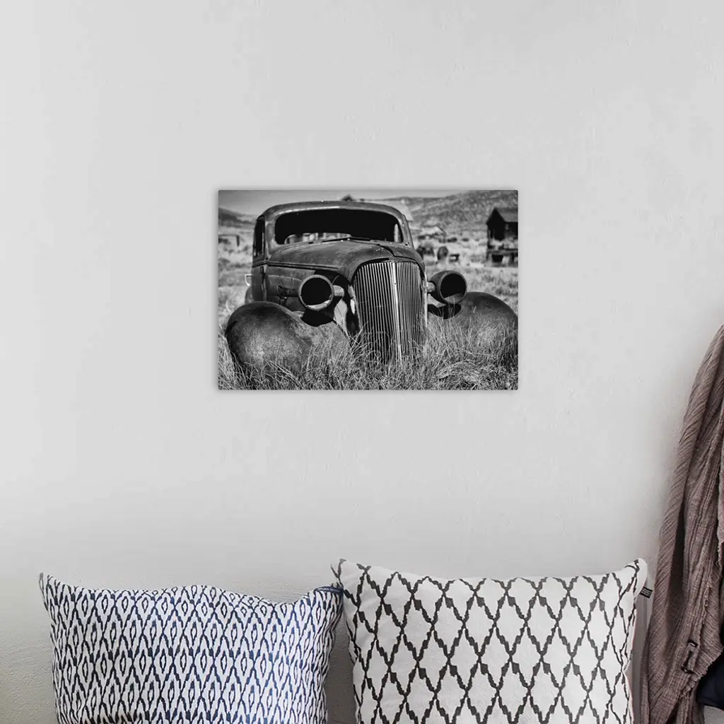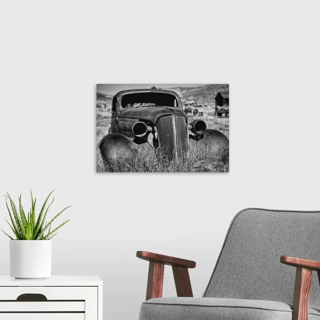 Antique car body of a 1937 Chevrolet is rusting away, Bodie California.