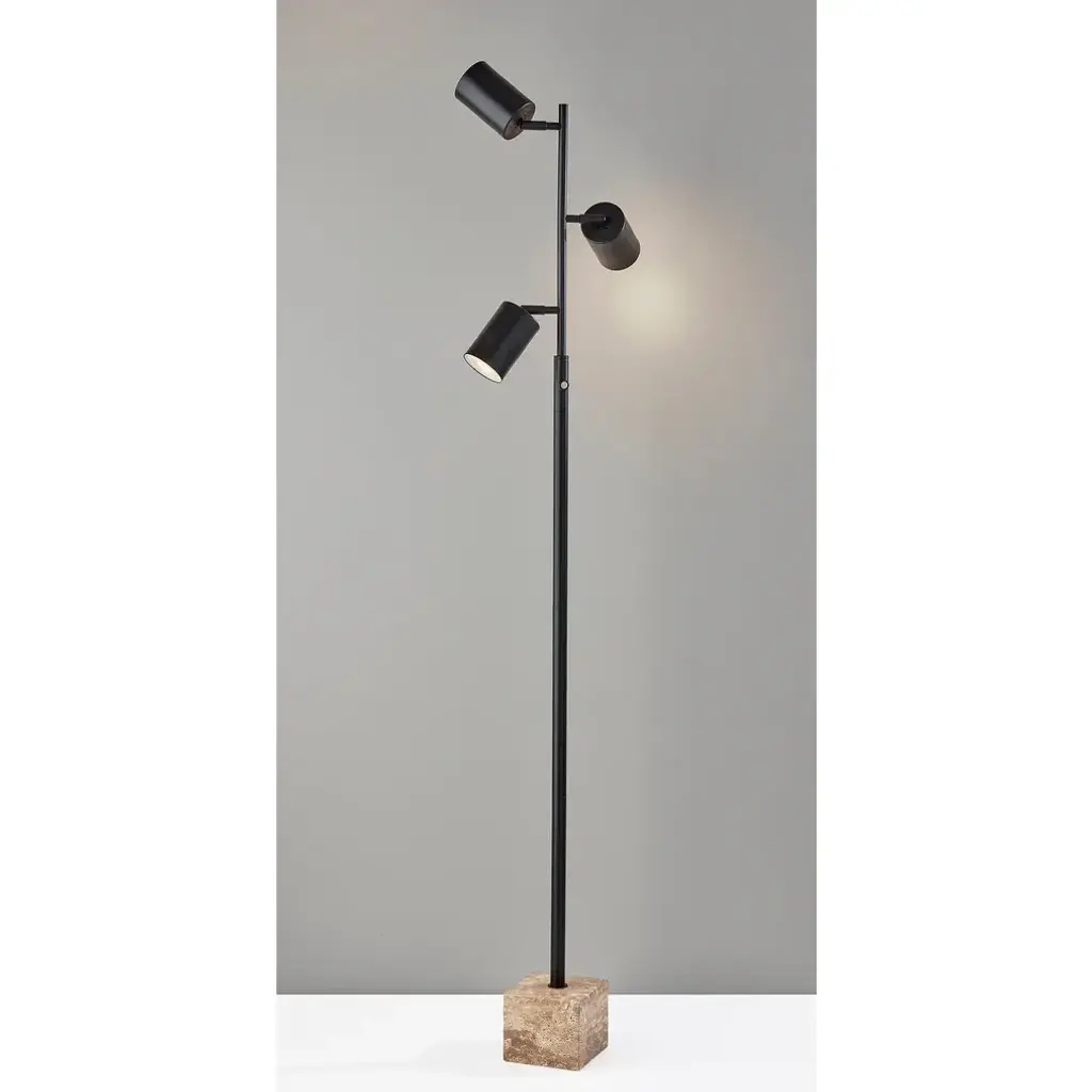 Introducing the 3967-01 Rutherford LED Tree Lamp, a masterpiece of contemporary design and versatile illumination. This striking lamp features a sleek black finish that adds a touch of modern sophistication to your living space. The Rutherford Tree Lamp is designed with adjustable shades, allowing you to direct light precisely where you need it, whether for reading, highlighting artwork, or setting the perfect ambiance. Anchored by a substantial cube base made of luxurious travertine stone, this lamp combines natural elegance with stability. The black metal cylinder-shaped shades exude a sense of refinement. As a bonus, three 5W GU10 LED dimmable bulbs are included, providing both energy efficiency and the flexibility to customize your lighting experience. The Rutherford Tree Lamp also boasts a convenient 3-level touch dimmer switch located on the tube, offering effortless control over brightness. Elevate your living space with the Rutherford LED Tree Lamp, where style, functionality, and adaptability converge seamlessly. Contemporary Chic: The 3967-01 Rutherford LED Tree Lamp features a sleek black finish, adding a modern touch to your living area. Adjustable Shades: With its adjustable shades, this lamp allows you to precisely direct the light, making it perfect for reading, accentuating decor, or creating ambiance. Natural Grandeur: The lamp's chunky cube base is constructed from luxurious travertine stone, infusing your space with natural beauty while ensuring stability. Energy-Efficient LED: This lamp includes three 5W GU10 LED dimmable bulbs, offering energy efficiency and customizable lighting to suit various occasions. Touch Dimmer Control: Equipped with a convenient 3-level touch dimmer switch located on the tube, the Rutherford Tree Lamp provides easy control over brightness, allowing you to create the ideal lighting atmosphere for any moment.