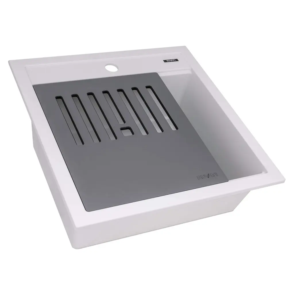 Ruvati 20-Inch Epicube Granite Composite Workstation Drop-In Bar Prep Sink Matte White - Rvg1620wh - White